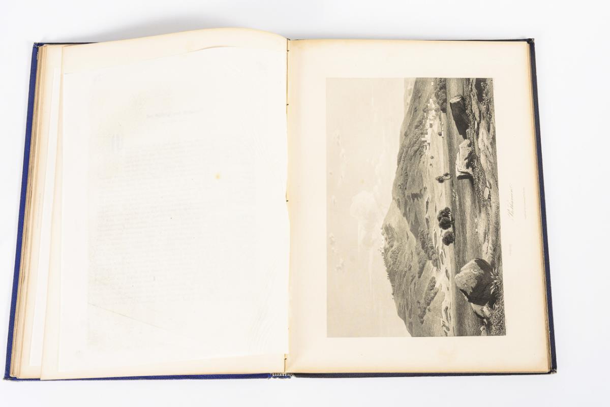 108 Textseiten und 32 Stahlstiche von Ägypten, Palästina, Syrien und Kleinasien. Vollständig. Geprägter Leineneinband. Einband mit Nutzungsspuren, etwas eingerissen, Block etwas locker.
