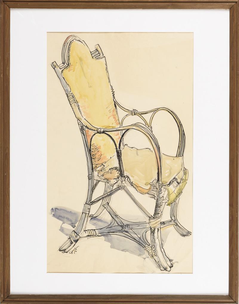 Ansicht eines Armlehnstuhls im hellen Licht. Leichte Knicke.