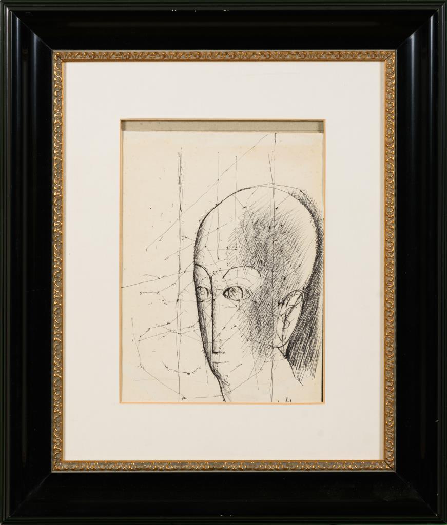 Abstrahierter Kopf. Ränder etwas geknickt, etwas stockfleckig.