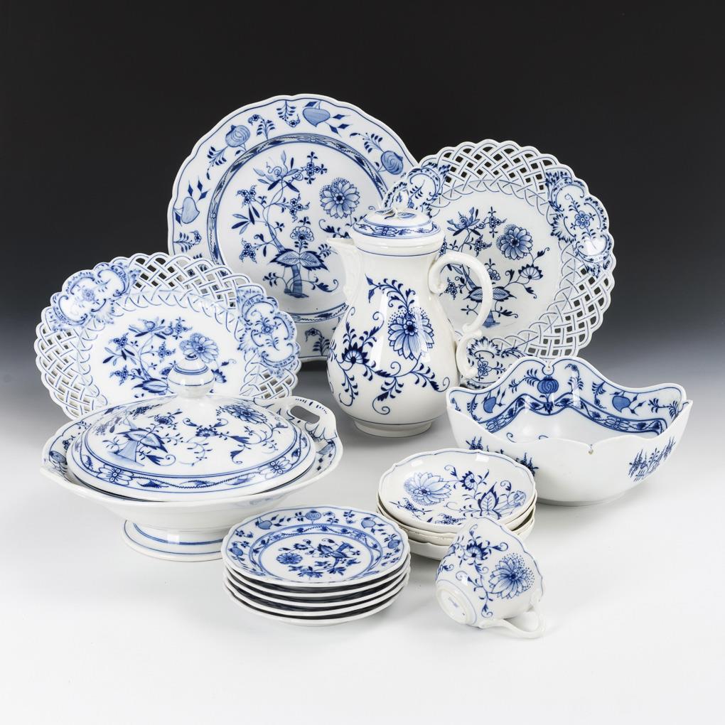 16 Teile Zwiebelmuster-Porzellan.