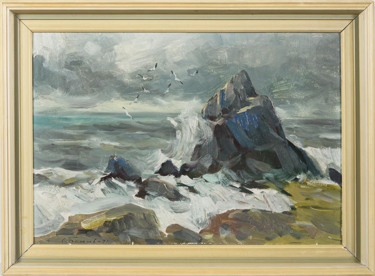 Öl/Malkarton. Links unten kyrillisch signiert, verso kyrillisch bezeichnet/betitelt. Datiert: (19)91.