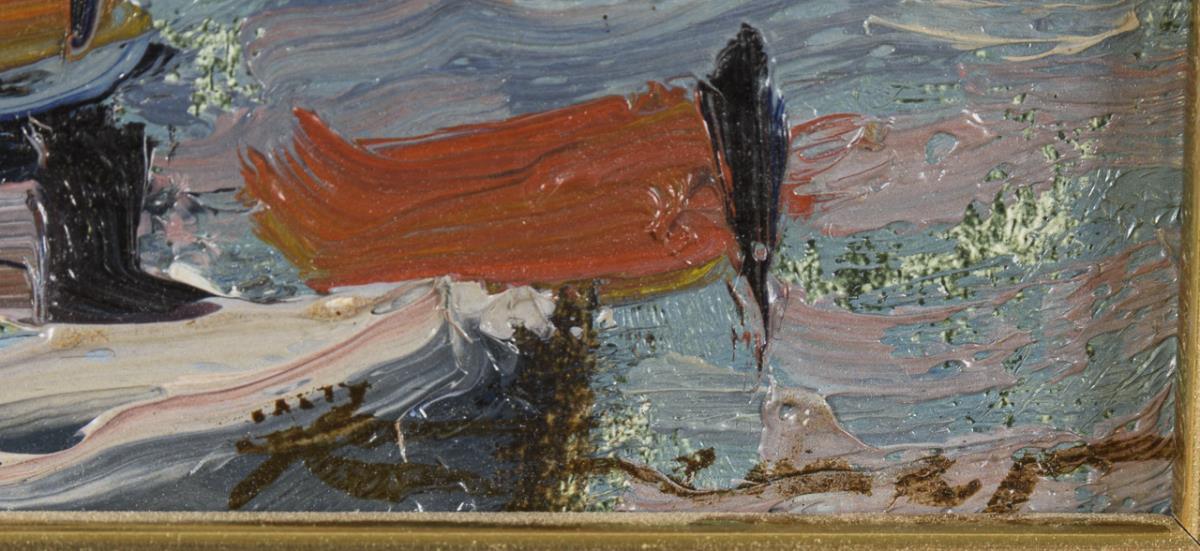 Öl/Malkarton. Rechts unten signiert, verso kyrillisch bezeichnet. Verso datiert: 1980.
