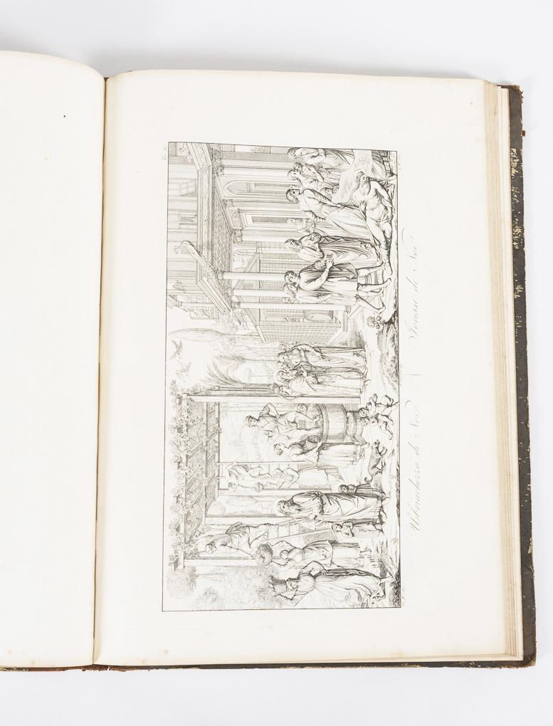 Titelblatt, (2), 41, (2) Textseiten und 46 Kupferstichblätter. Halbledereinband. Einband stärker berieben, sonst gut erhalten.