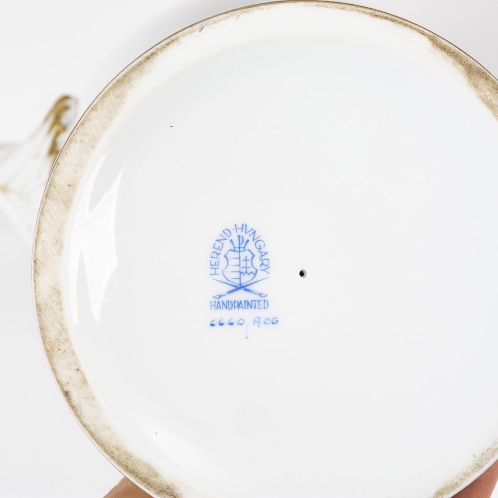 Korallenrotes bzw. grünes indianisches Blumendekor, Goldstaffage. H ca. 37 cm.