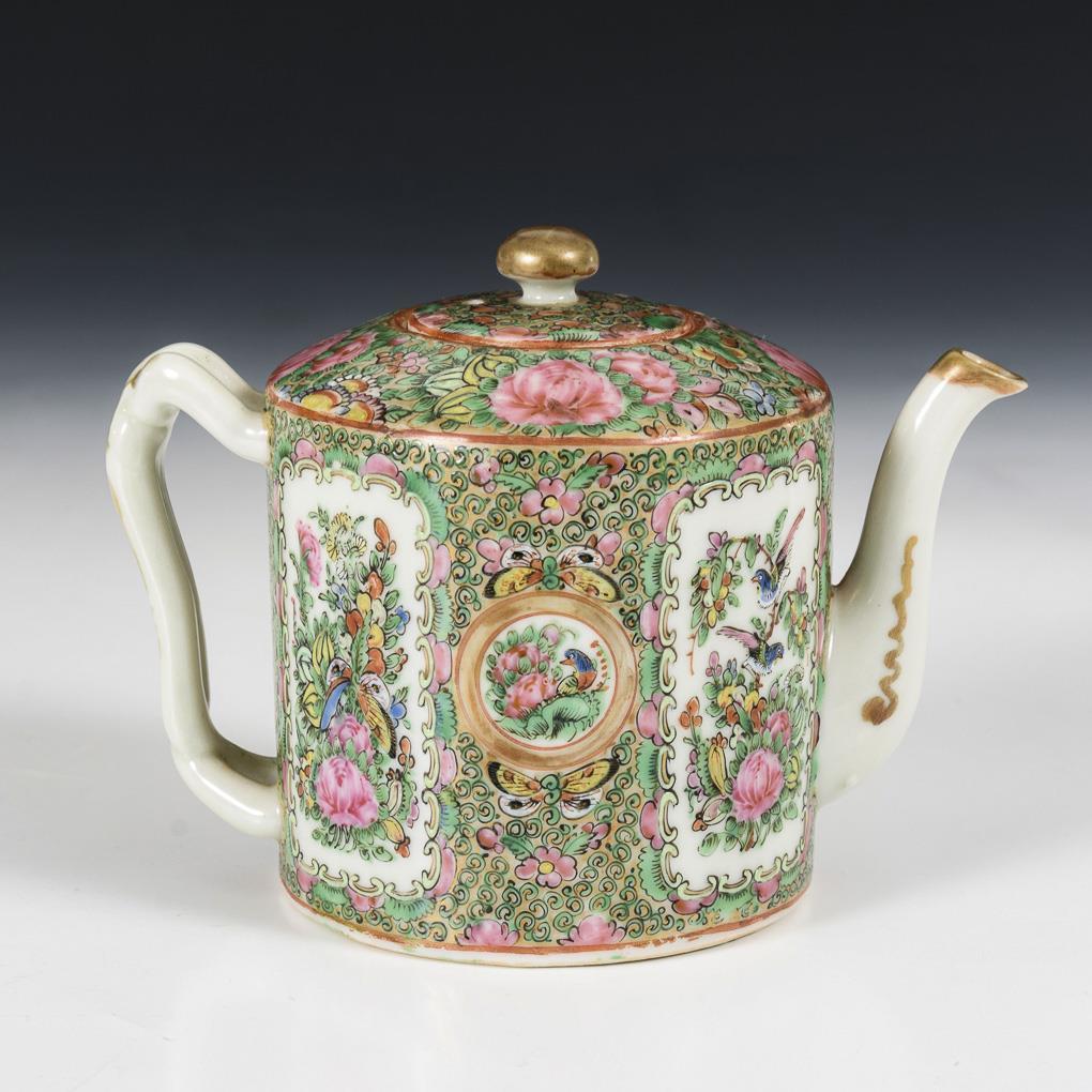 Teekanne mit Blumenmalerei 'famille verte'.