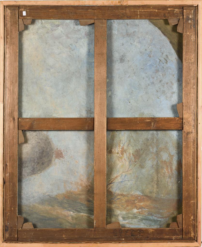 Öl/Leinwand. Rechts unten signiert, verso hochformatige Landschaftsskizze.