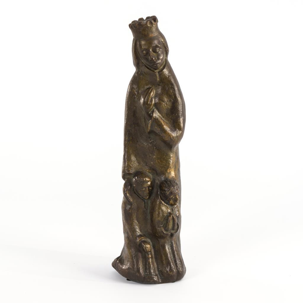 Kniende zu Füßen der Schutz und Fürbitte gewährenden Maria. Minimal sichtbare Formnaht mit beriebener Patina.