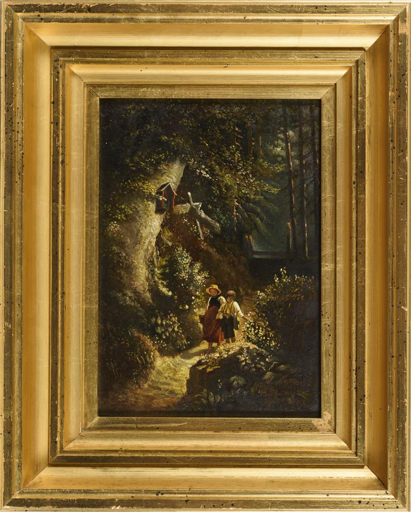 Kopie nach Spitzweg: Kinder auf Waldweg