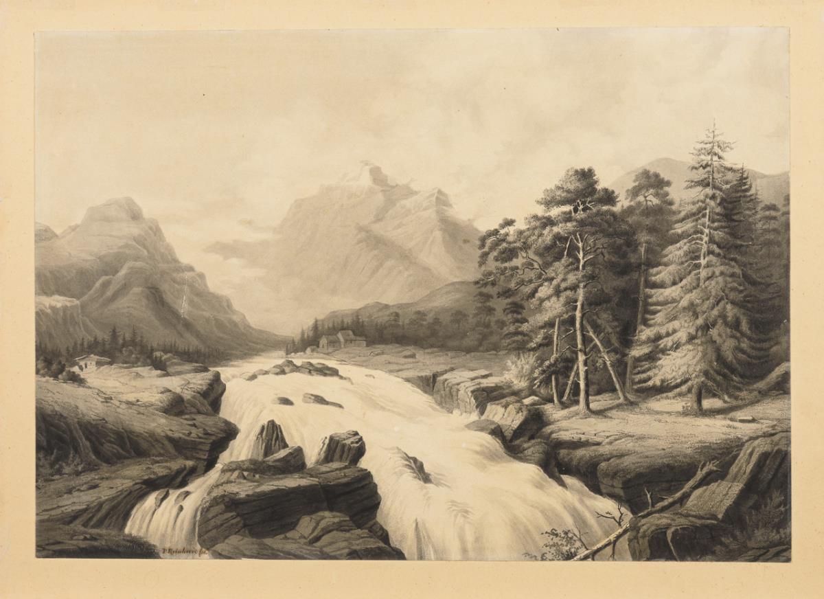 Lavierte Federzeichnung in Braun und Schwarz. Tuschsignatur. Um 1850.
