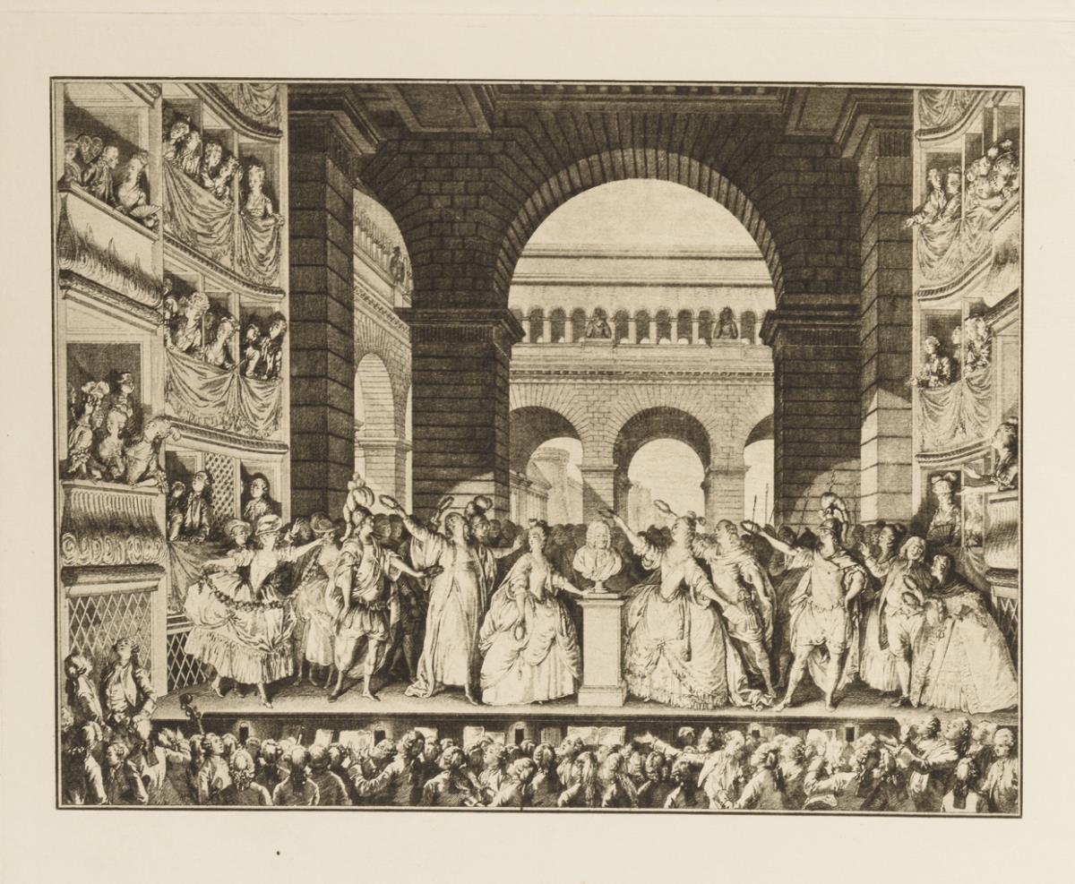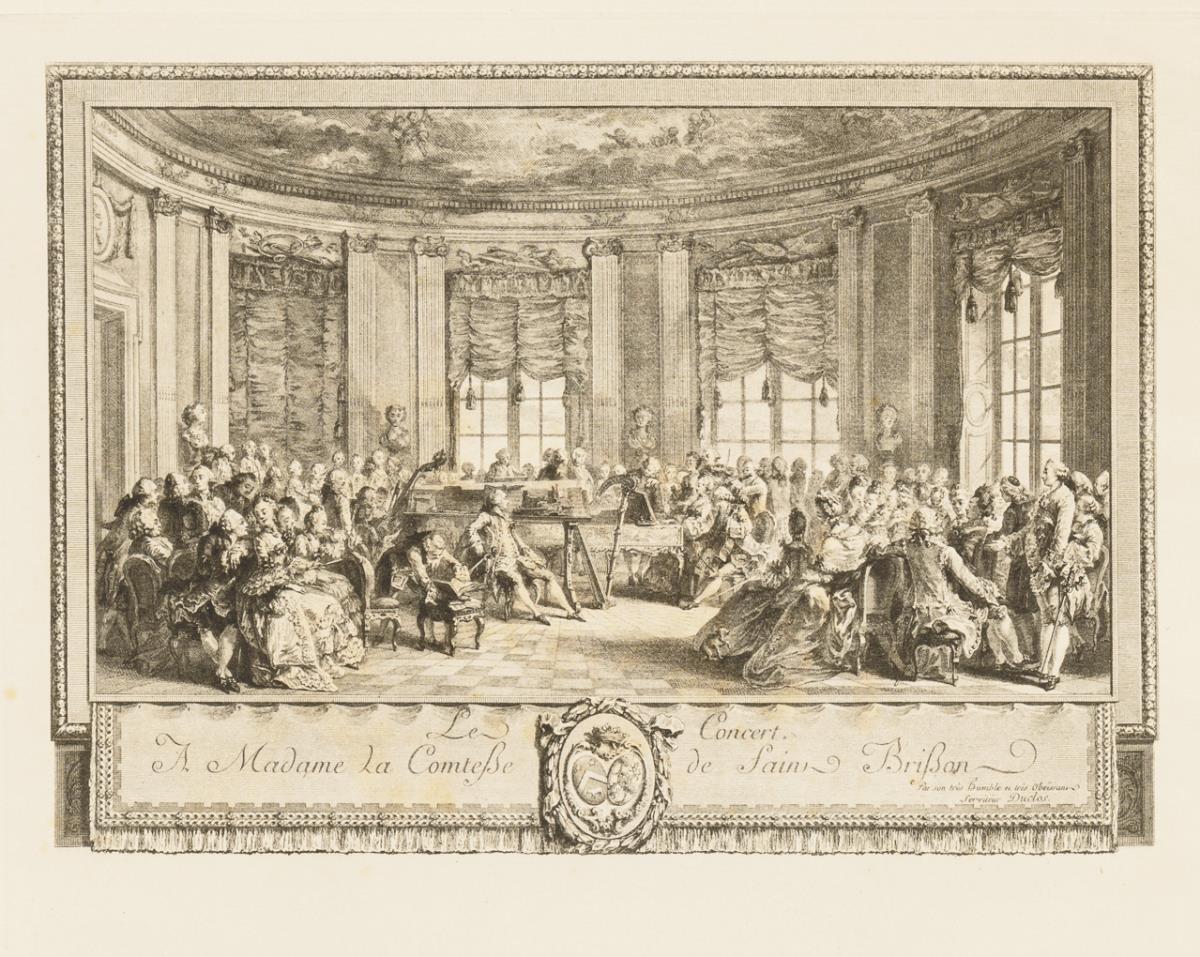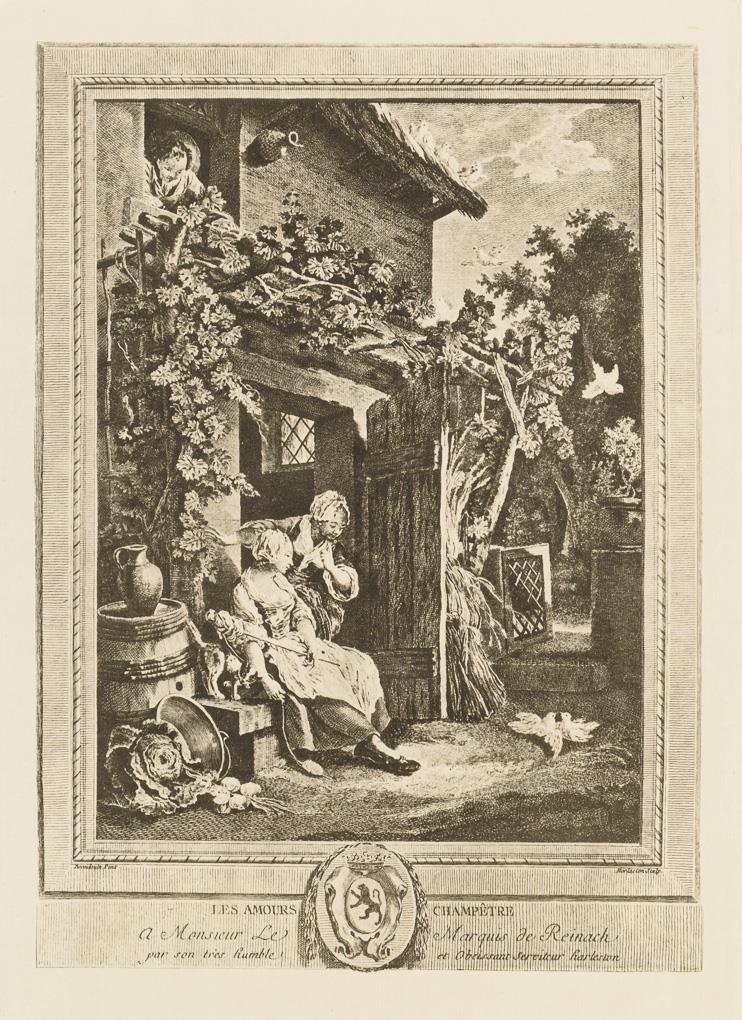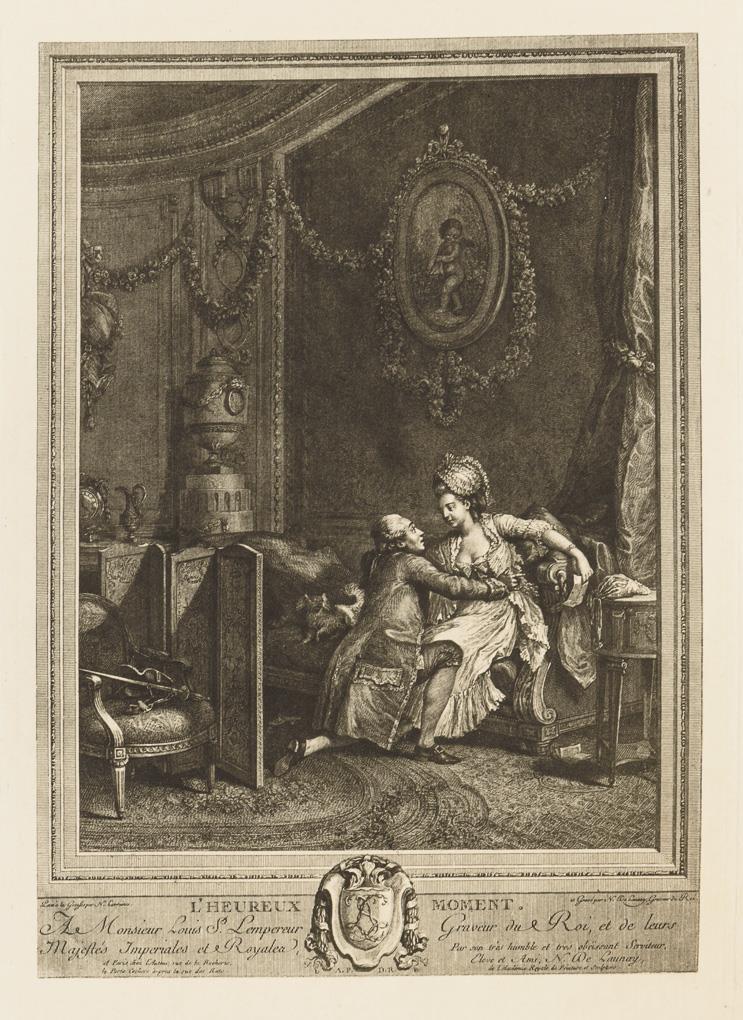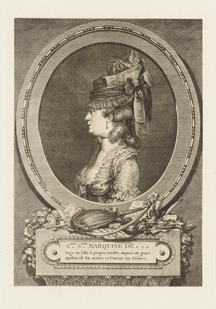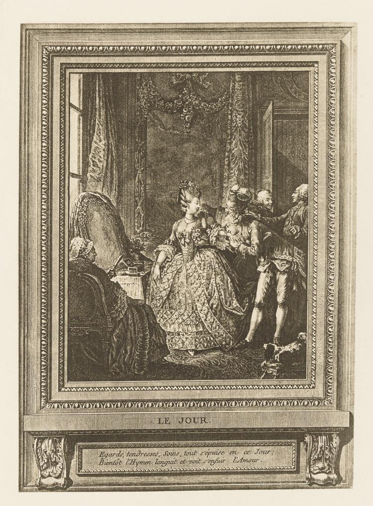 Nach Gemälden des 18. Jh: Porträt von "Adrienne Sophie Marquise de ***" | Porträt von "Louise Emilie Marquise de ***" | "Le Boudoir" | "Les Amours Champetre" | "Le Jour" | Theaterszene | "Le Bal Paré" | "Le Concert", verso stockfleckig | "L'Heureux Moment" | "L'Évenément au Bal".