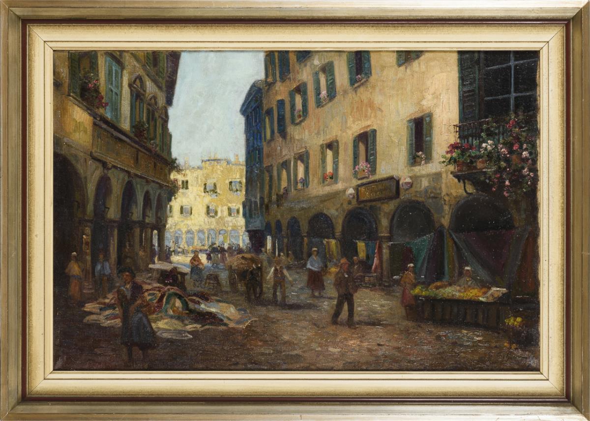 Undeutlich signiert: Italienische Gasse mit Händlern