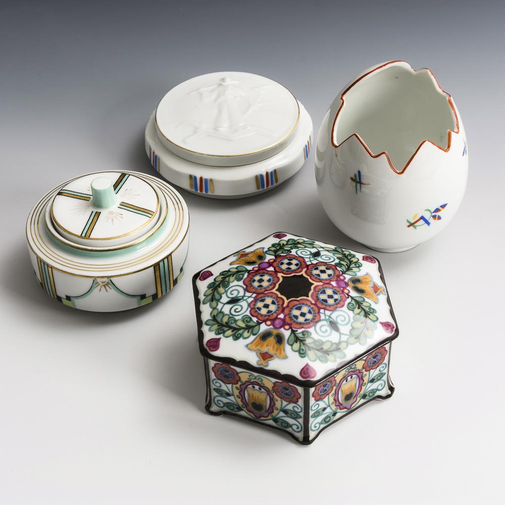 Sie befinden sich hier:   Startseite Kategorien Porzellan 3 Art-déco-Dosen und 1 -Eivase
