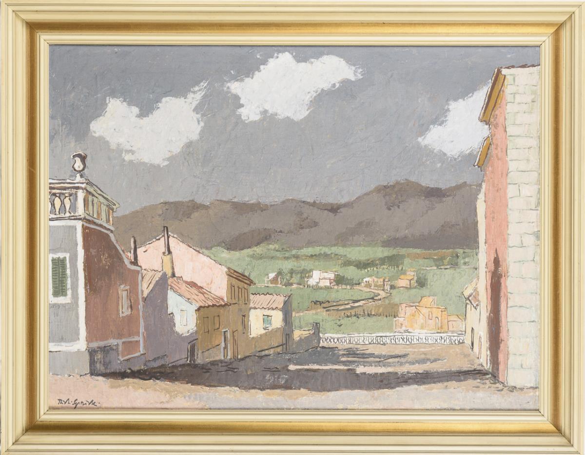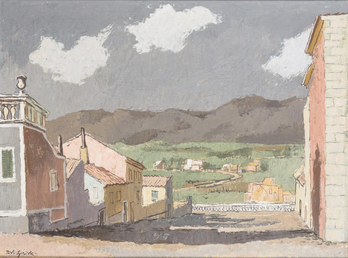 Undeutlich signiert: Sonnige mediterrane Landschaft