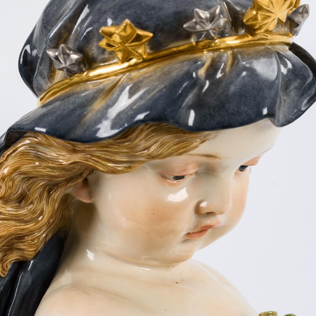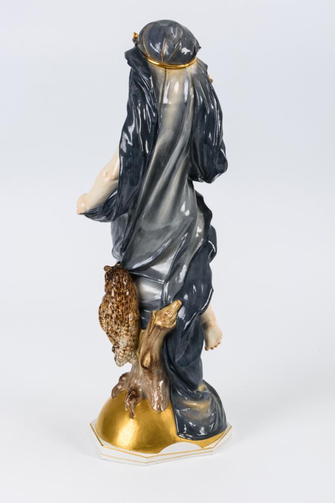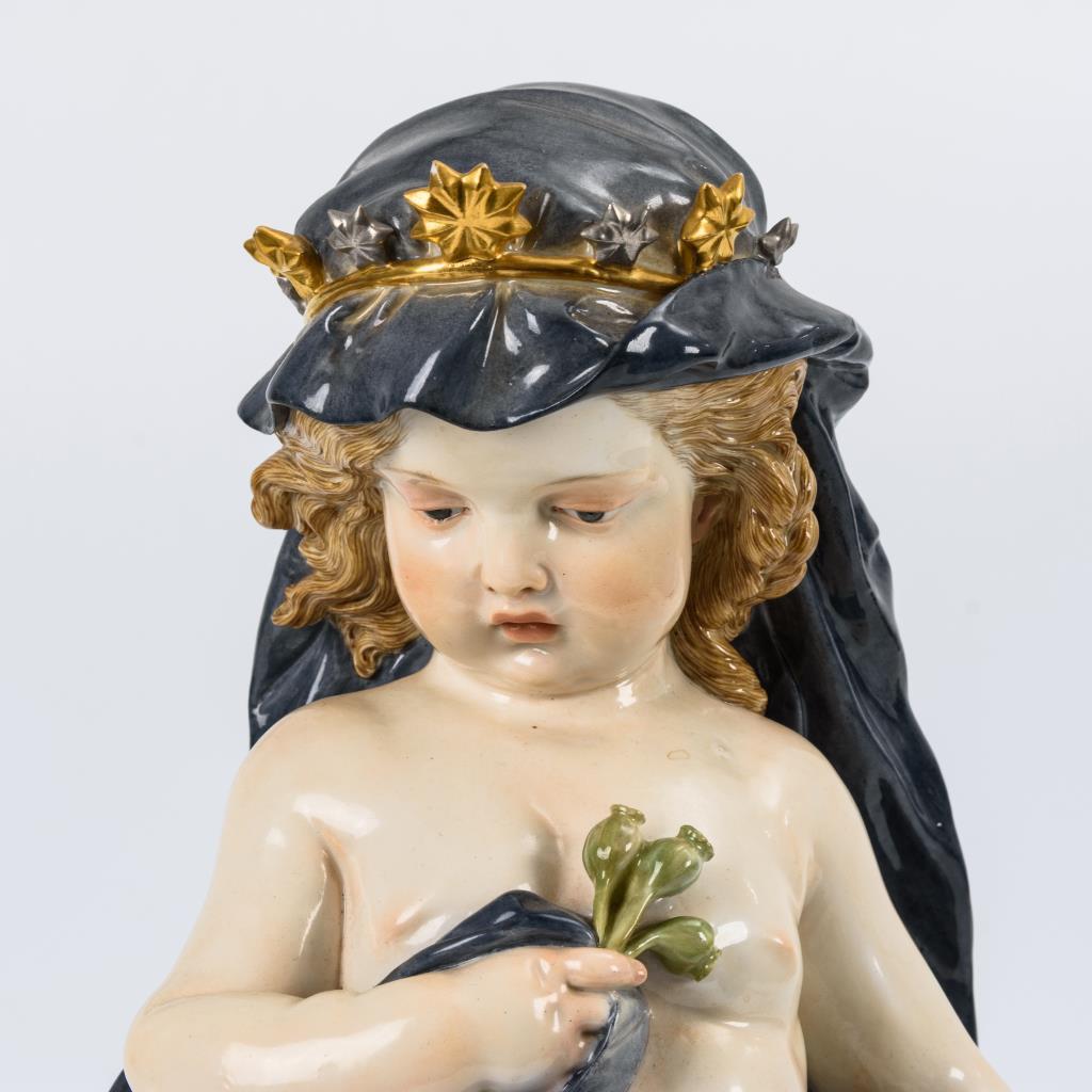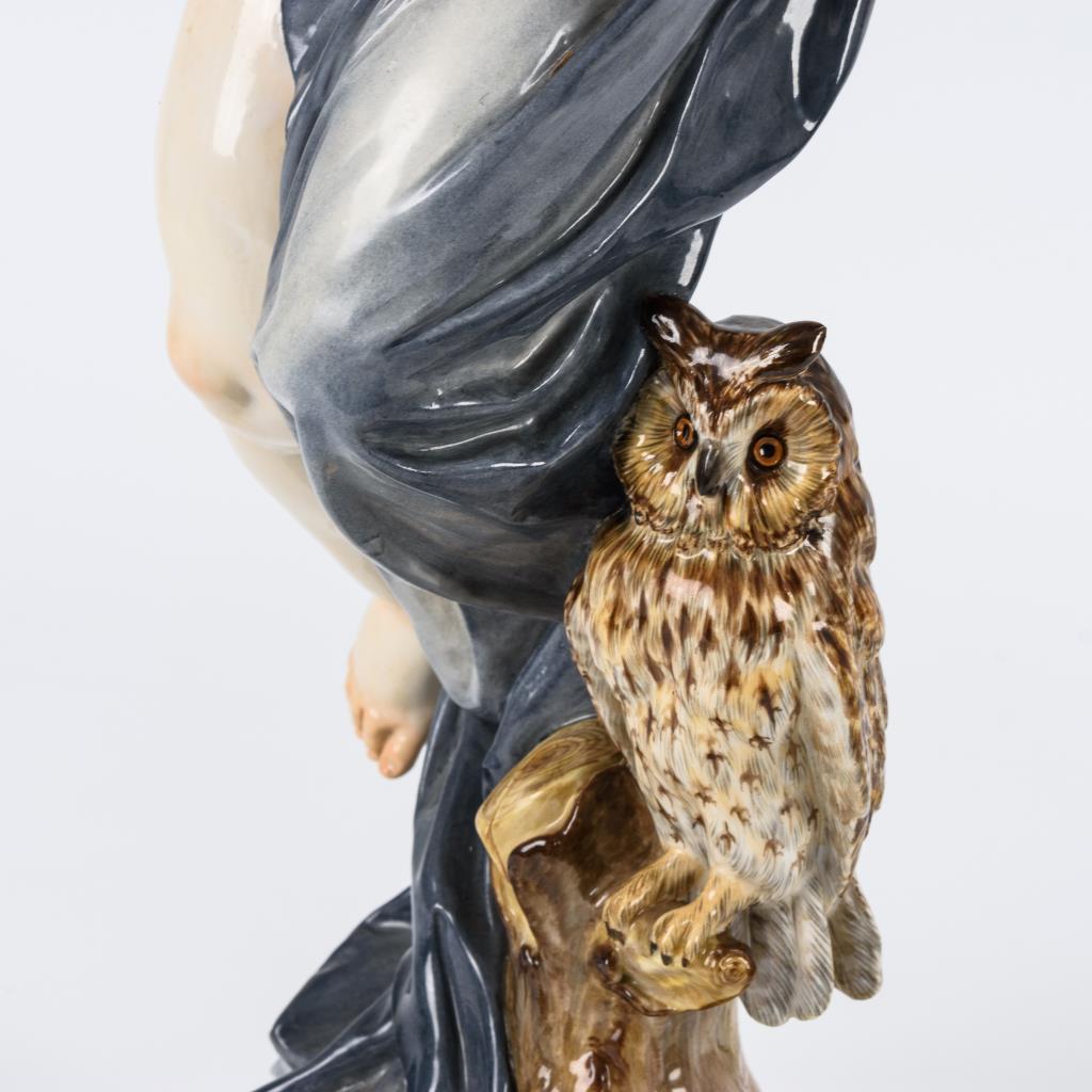 An einem Baumstumpf mit Eule schwebender Knabe als Allegorie der Nacht, ein Sträußchen Mohnkapseln in der Rechten haltend. 4 minimale Bestoßungen am Stand.