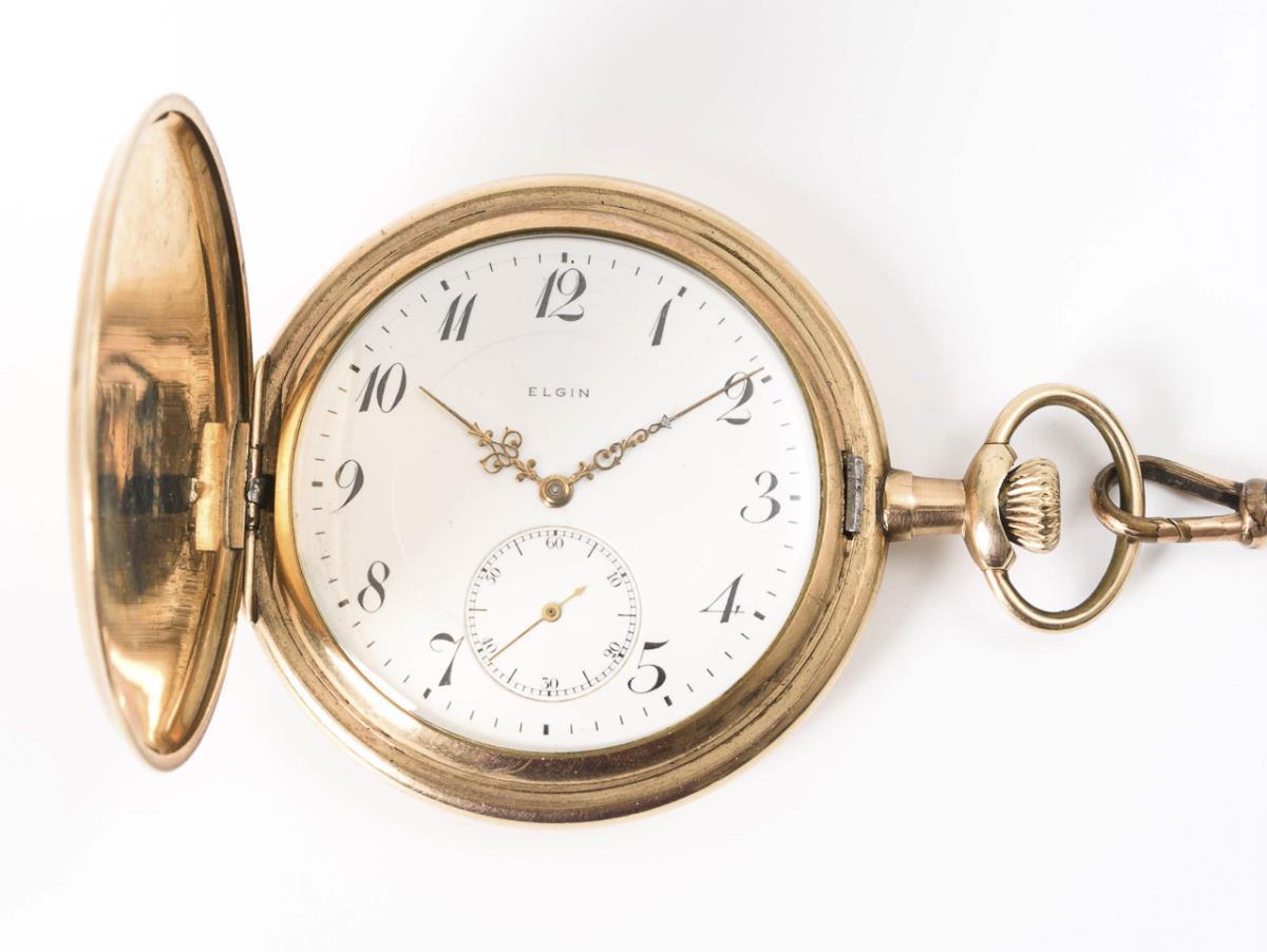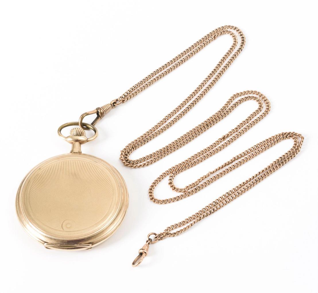Vergoldete Savonnette mit langer Uhrenkette. Elgin National Watch Co.
