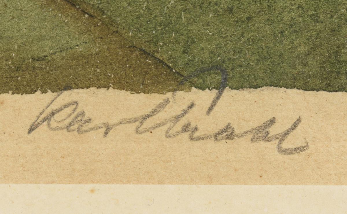 Passepartoutausschnitt 24 x 31,5 cm. Gerahmt & hinter Glas: 34 x 41 cm.