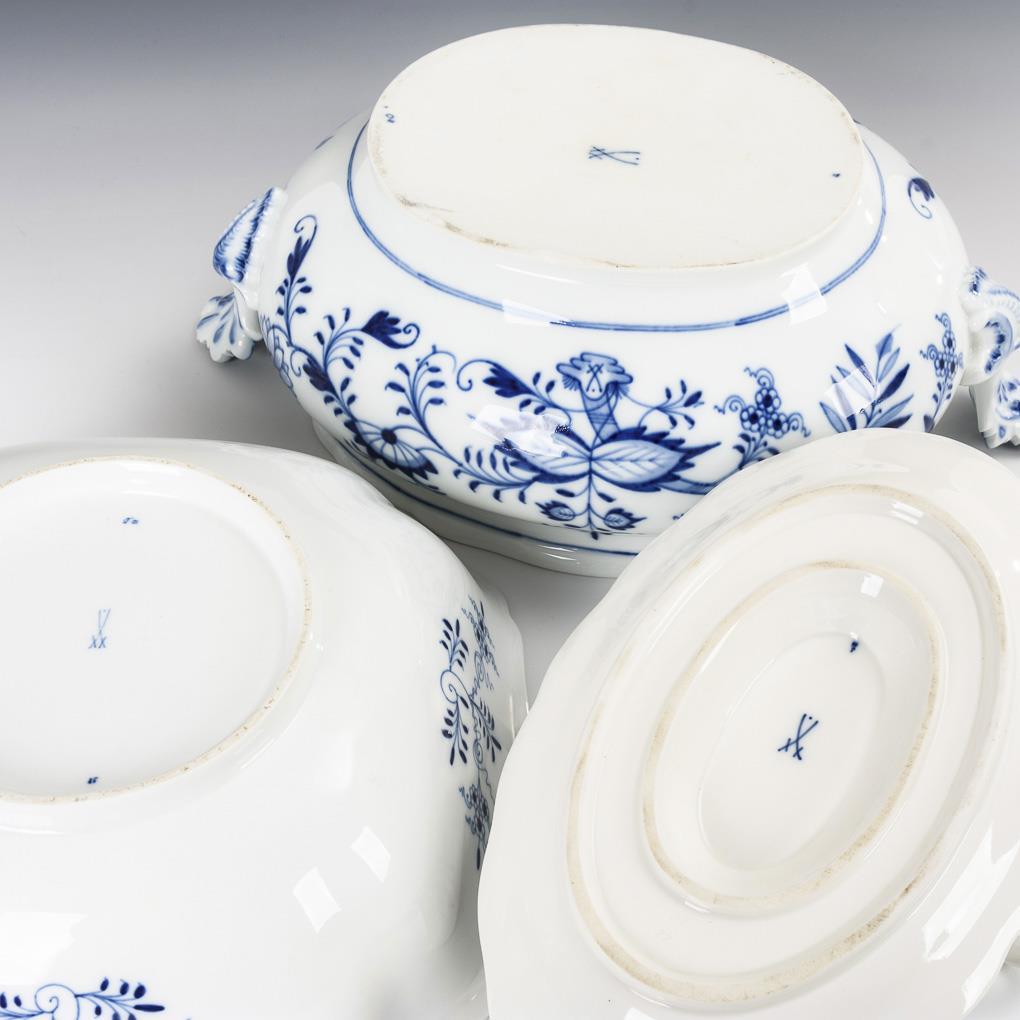 Zwiebelmuster-Terrine, -Quadratschale und -Sauciere. Meissen.