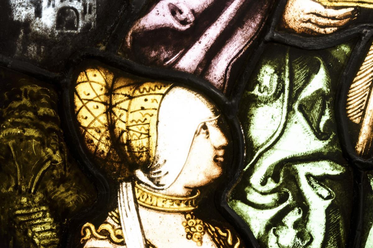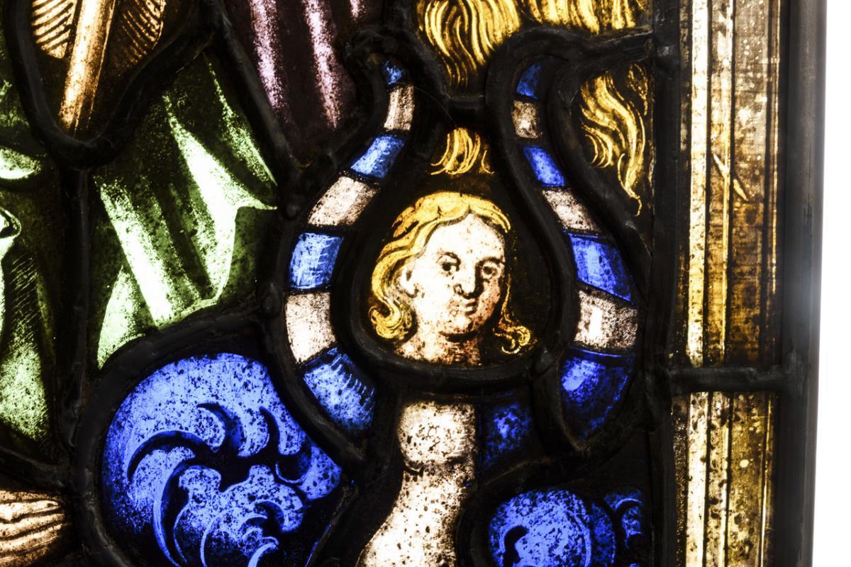 Bleiglas-Einhängebild mit Heiligendarstellung.
