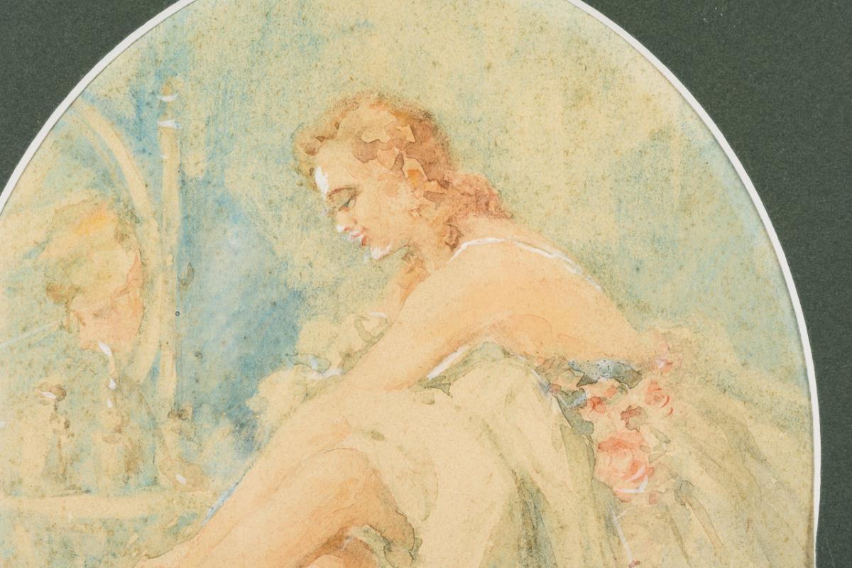 Passepartoutausschnitt 20 x 17 cm. Framed & behind glass: 42 x 32 cm.