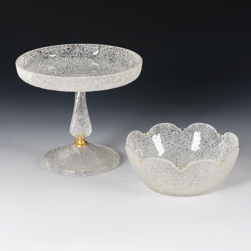 Tafelaufsatz und Schale aus Krakelee-Glas.