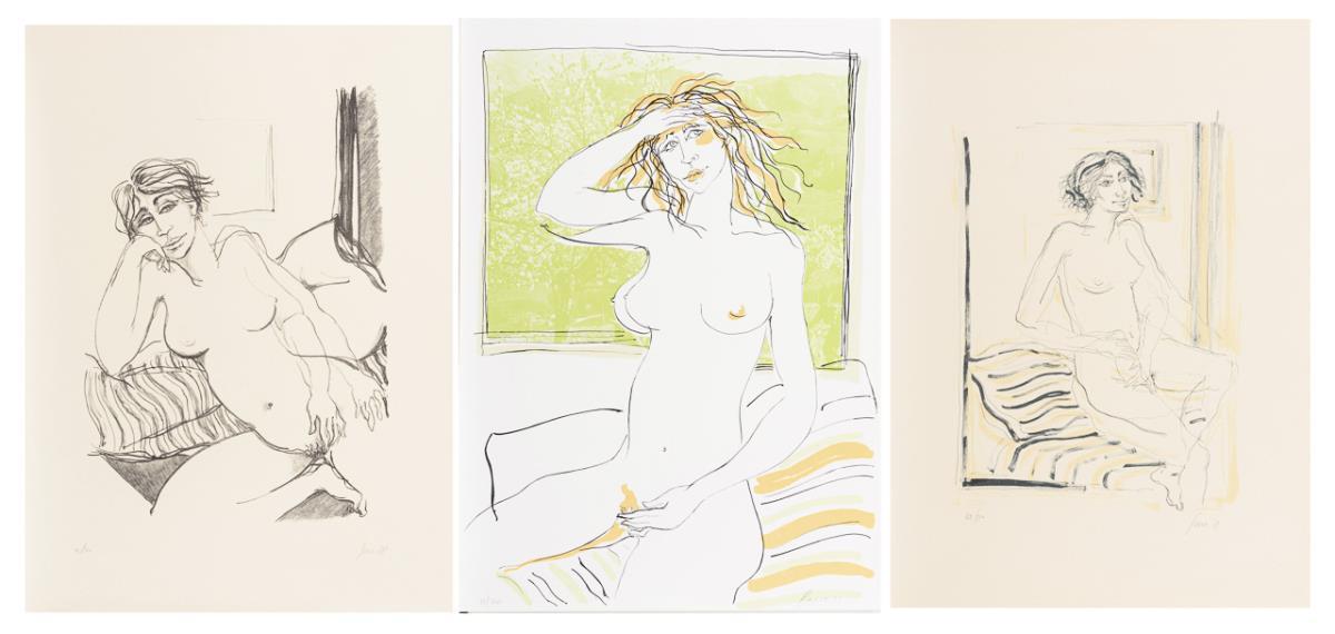 Blonder weiblicher Akt: Farbsiebdruck, [19]83, Exemplar: 18/60, Prägestempel "Centro Internacionale Della Grafica" | Weiblicher Akt, Lithografie, [19]78, Exemplar: 50/60, Prägestempel und verso Stempel "Centro Internacionale Della Grafica" No. 425 | Weiblicher Akt, Farblithografie, [19]78, Exemplar: 68/70, Prägestempel und verso Stempel "Centro Internacionale Della Grafica" No. 508.