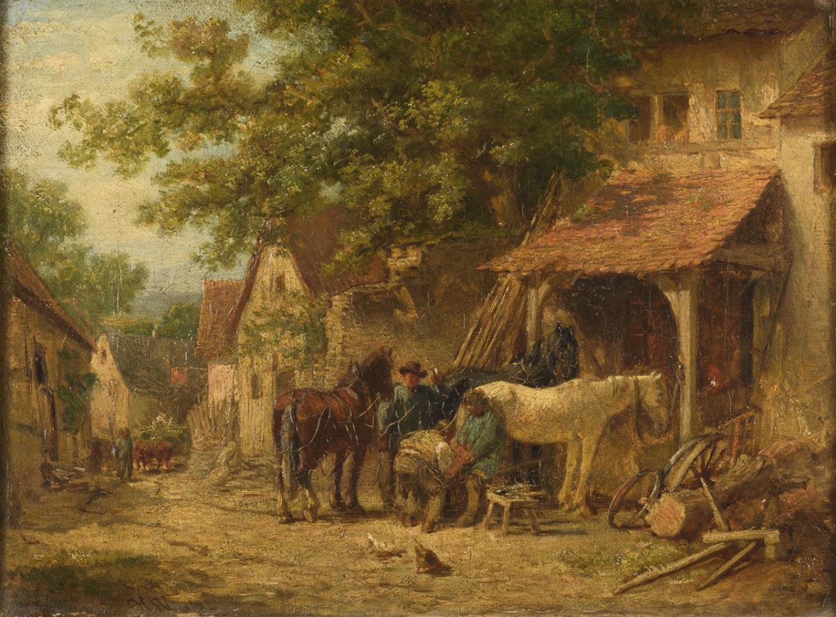 Pferde vor der Schmiede