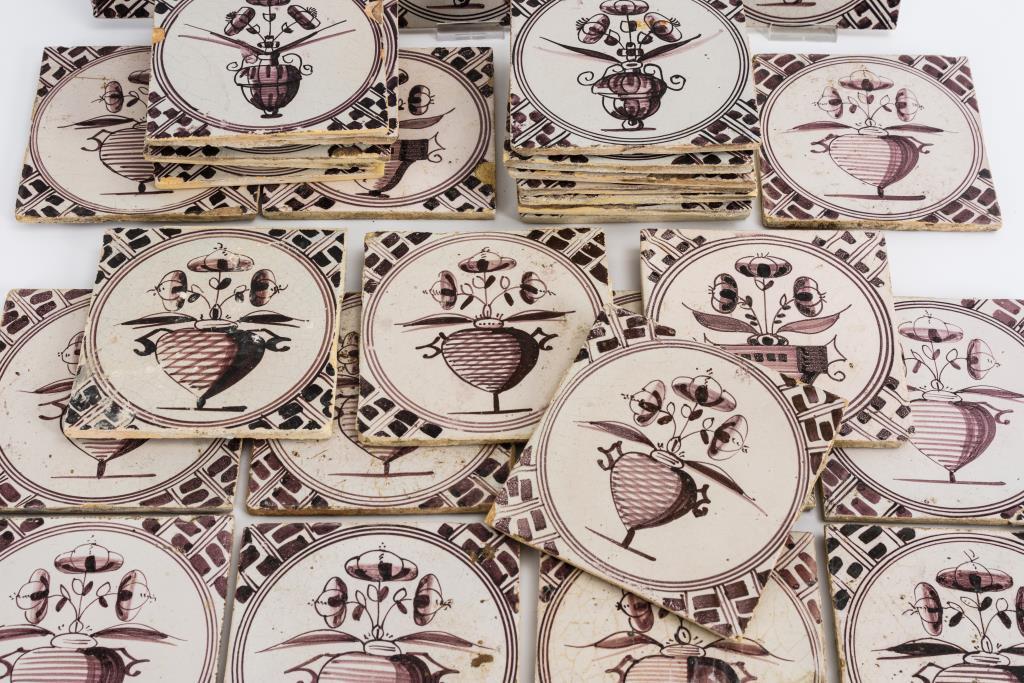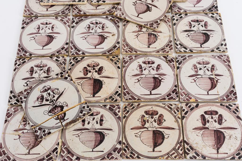 Konvolut Barock-Fliesen mit manganvioletter Bemalung