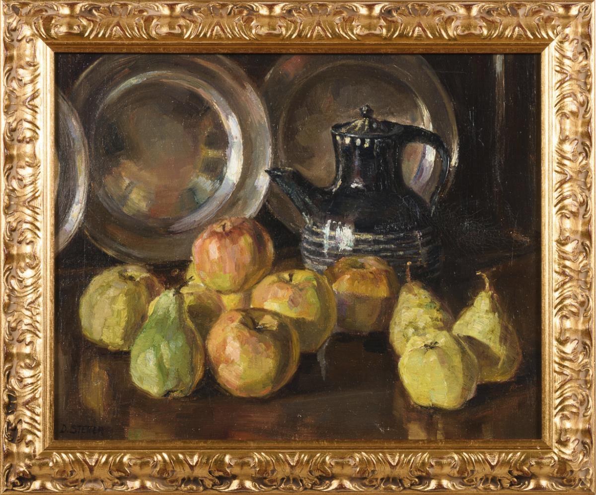 Stillleben mit Äpfeln und Zinngeschirr