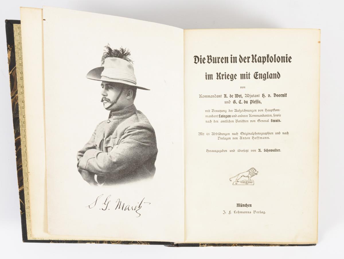Autenrieth: "Ins Innere Hochland von Kamerun - eigene Reiseerlebnisse", Stuttgart (1913), 189 Seiten. Mit Widmung des Verfassers. Halbleineneinband, 18,5 x 13 cm. / Steevens: "With Kitchener to Khartum", Edinburgh u. London 1898, 9. Auflage. 326 Seiten, Leineneinband, 19,5 x 14 cm. / "Die Buren in der Kapkolonie im Krieg mit England" Herausgeber Schowalter, München o.J., 293 Seiten. Halbleineneinband, 22 x 15,5 cm. / Rohrbach: "Die deutschen Kolonien - Ein Bilderbuch aller deutschen Kolonien ...", Dachau o.J., 84 Seiten, Halbpergamenteinband, 27,5 x 20,5 cm. / de Guerville: "Das moderne Aegypten", Leipzig 1906, 368 Seiten, Leineneinband, 23,5 x 16,5 cm. Alle Bücher illustriert oder mit Kartenmaterial. Leichte Gebrauchsspuren.
