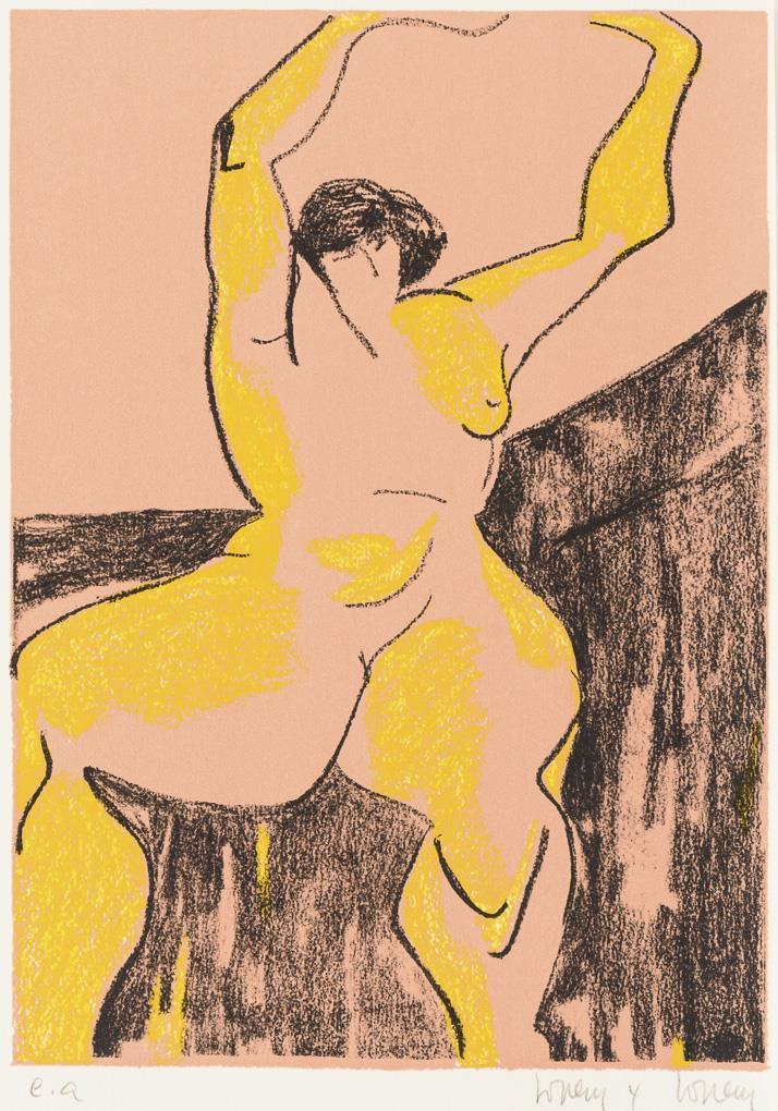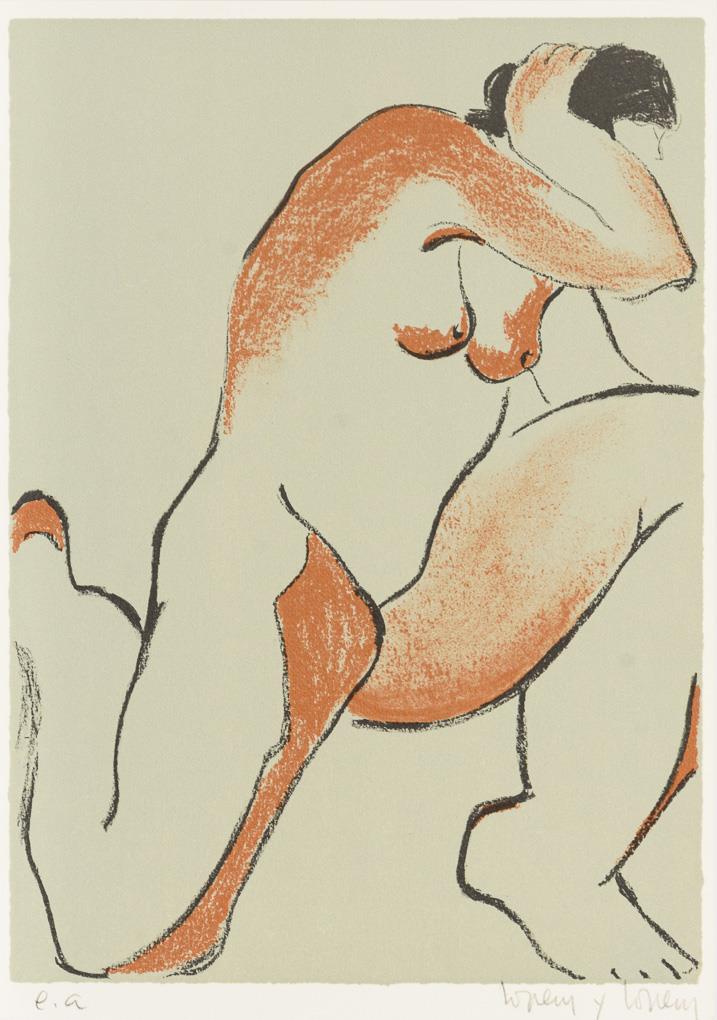 Weiblicher Akt, Blatt: 34 x 24 cm, Exemplar: "e.a." - Künstlerexemplar | Liegender weiblicher Akt, Blatt: 28 x 38 cm, Exemplar: 100/100 | Tanzender weiblicher Akt, Blatt: 34 x 24 cm, Exemplar: "e.a." - Künstlerexemplar | Rosafarbener Akt, Blatt: 28 x 38 cm, Exemplar: 76/100 Abstrahierter weiblicher Akt, Blatt: 30 x 37 cm, Exemplar: LXXIV/C.