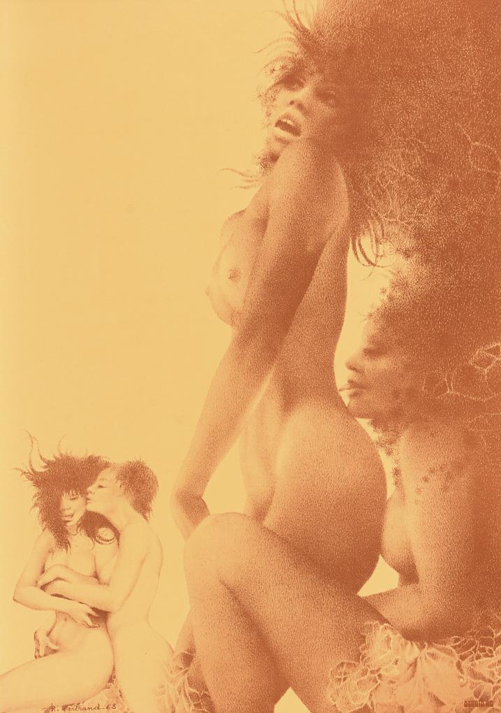 Werbeplakat mit erotischen weiblichen Akten für Studio 69 - Deutschlands erste Galerie für erotische Kunst. Ecke oben links mit Knick, ein kleiner Riss am rechten Rand.