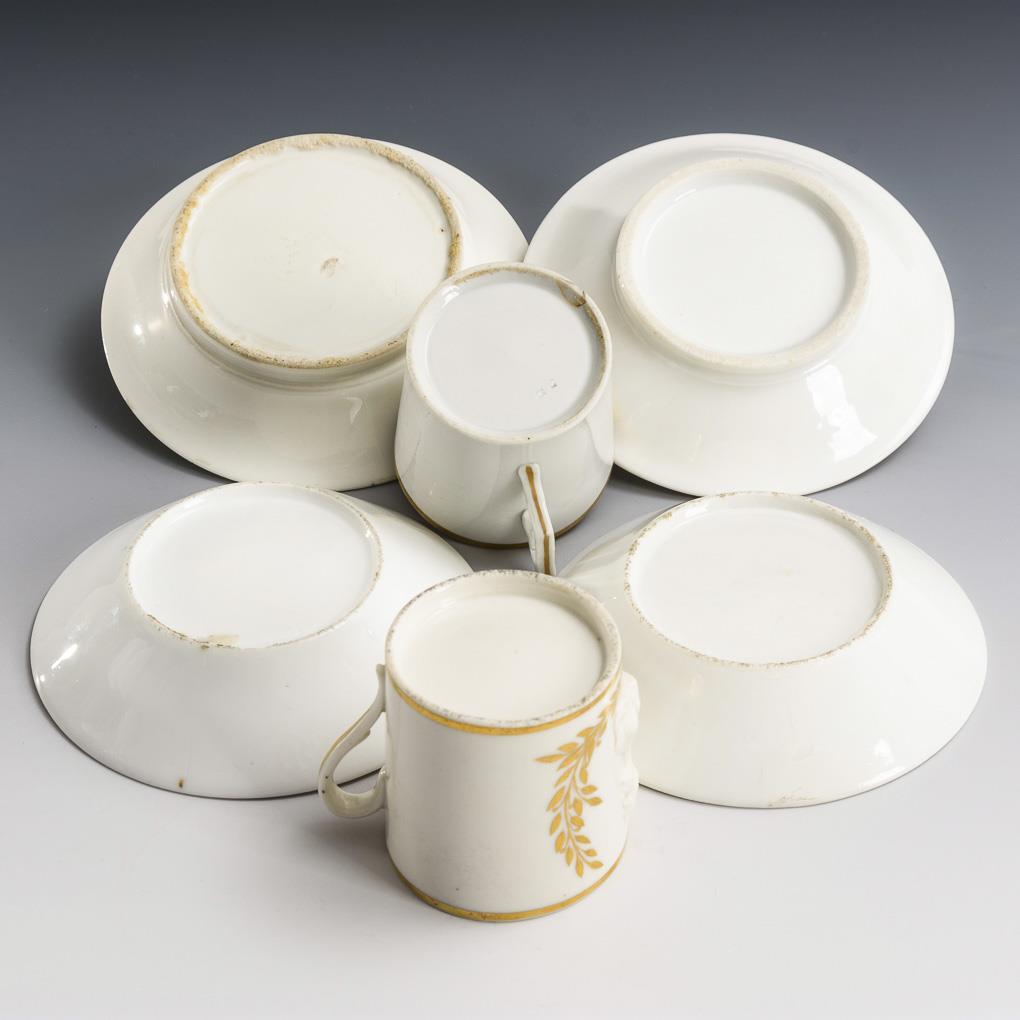 2 Tassen mit Reliefporträt und 4 Untertassen.