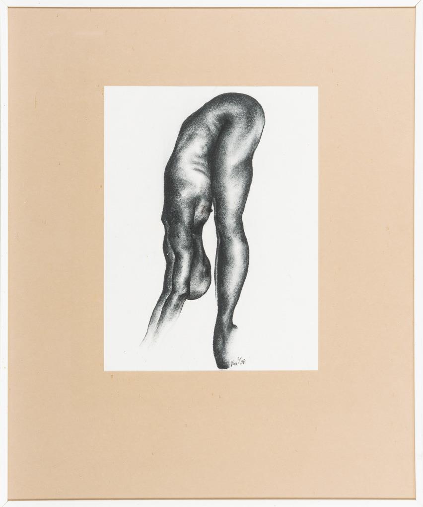 Androgyner Akt, verso mit Farbproben. Etwas griffspurig.