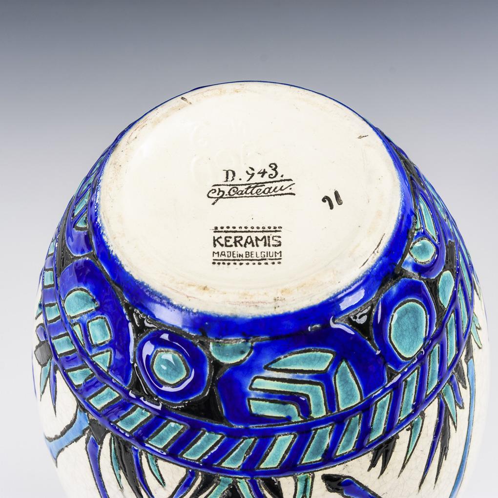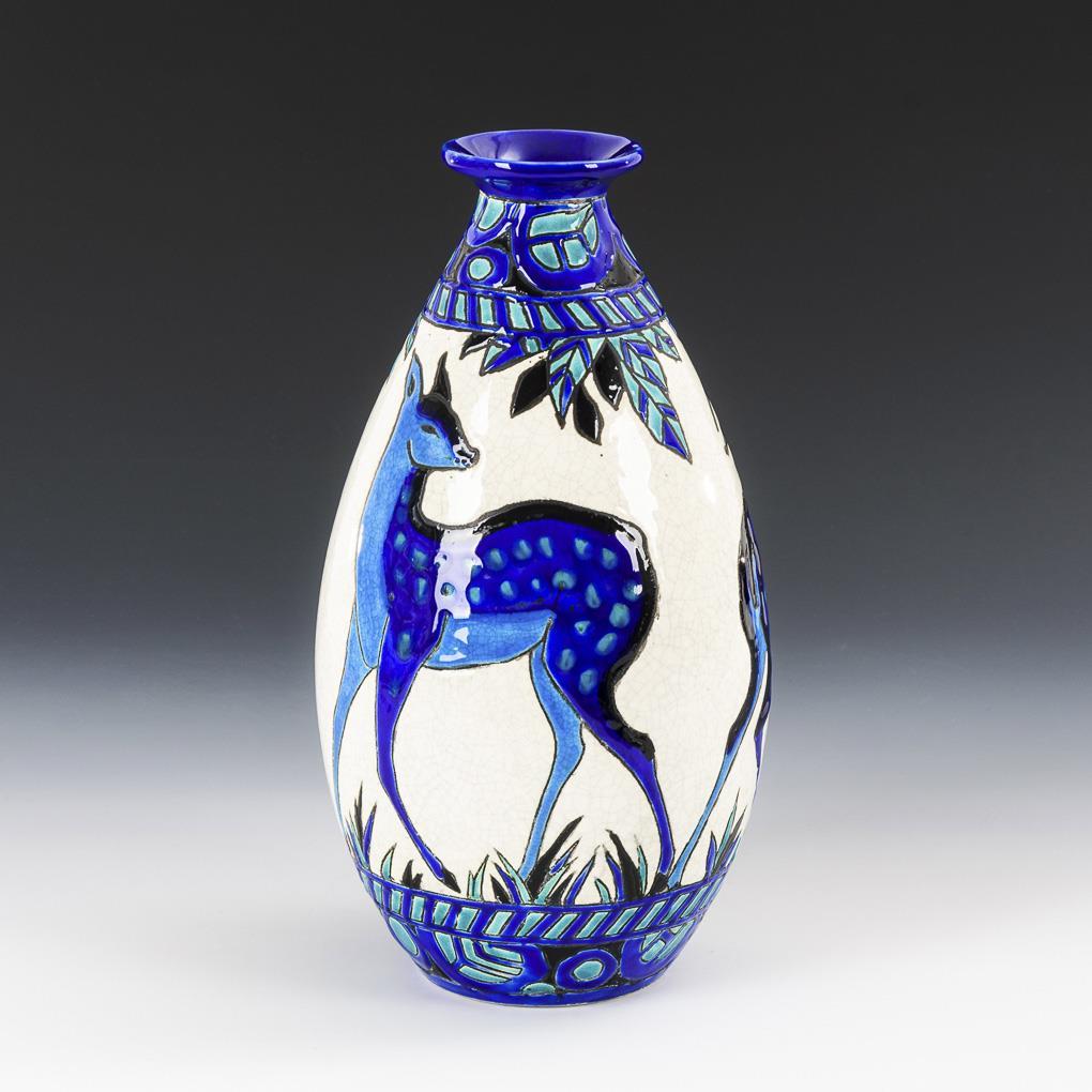 Art-déco-Künstlervase mit Damwild. Boch Frères Keramis, Belgien.