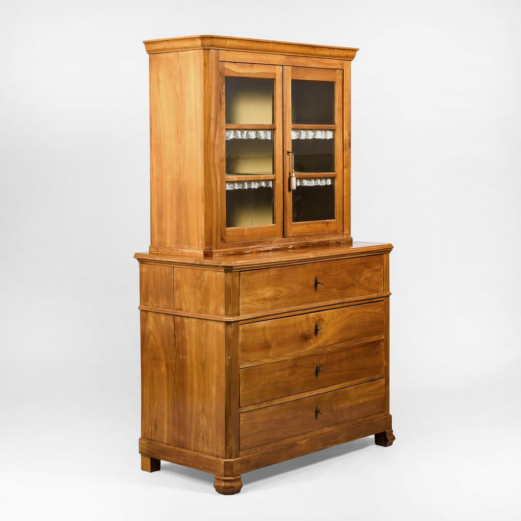 Biedermeier-Schreibkommode mit Vitrinenaufsatz.