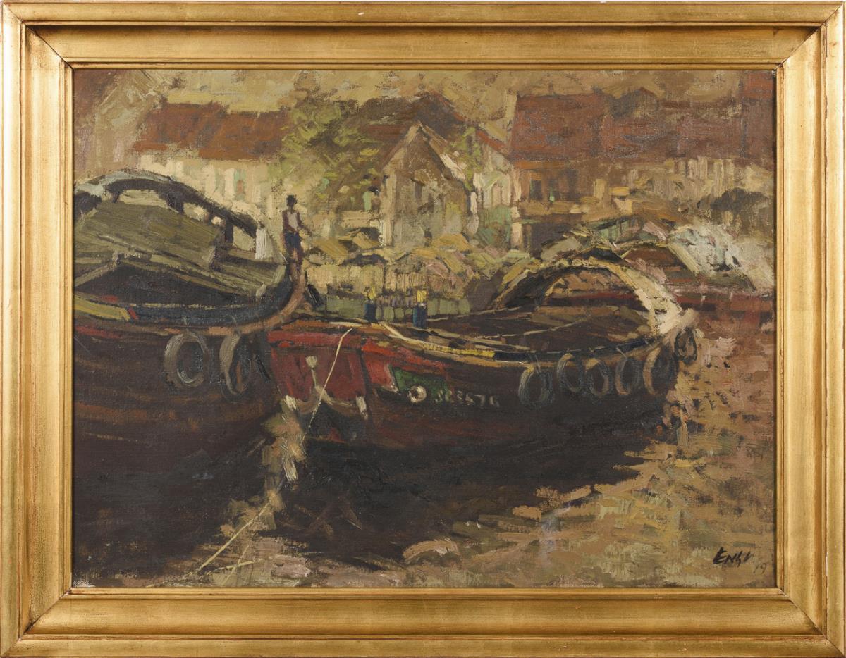 Undeutlich signiert: Schiffe im Hafen