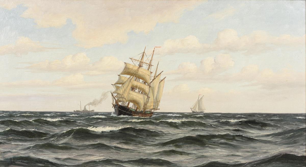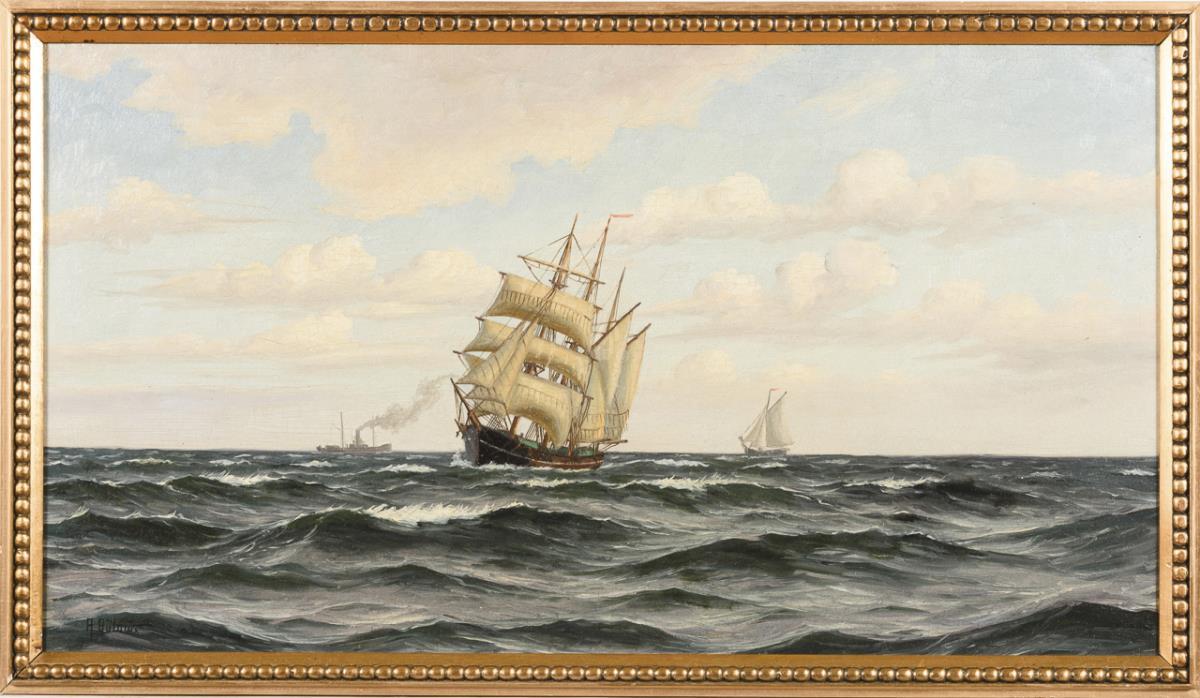Undeutlich signiert: Schiffe auf dem Meer