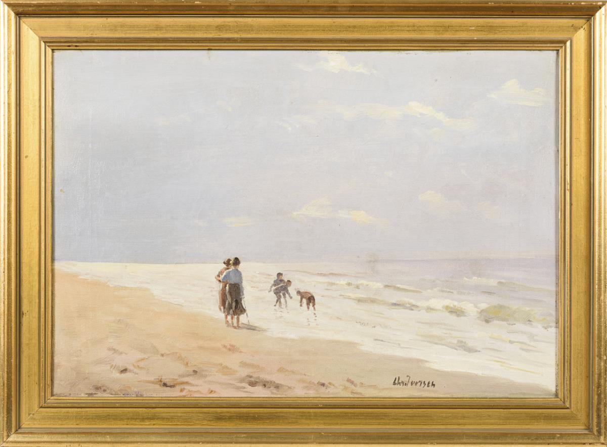 Undeutlich signiert: Familie am Strand