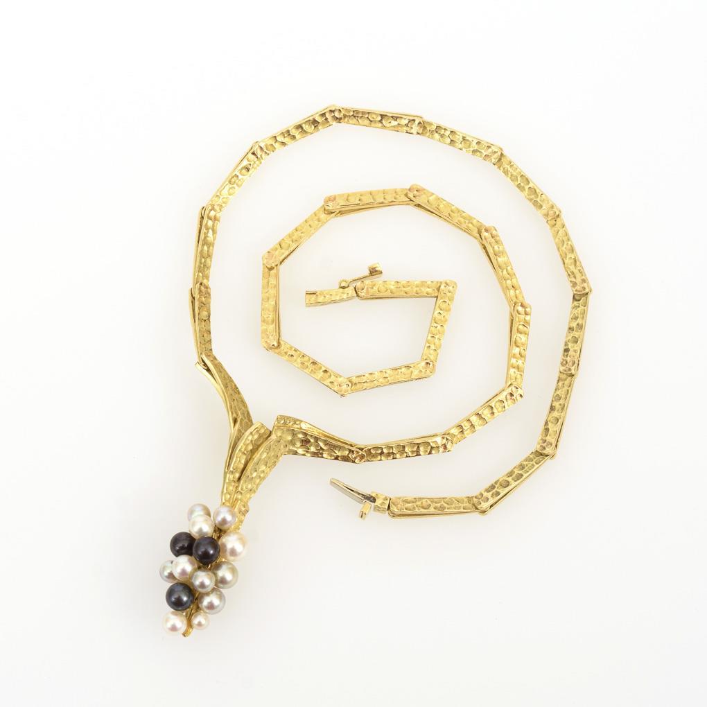 Schweres Designer-Collier mit Zuchtperlen. Grosse, Pforzheim 1969.