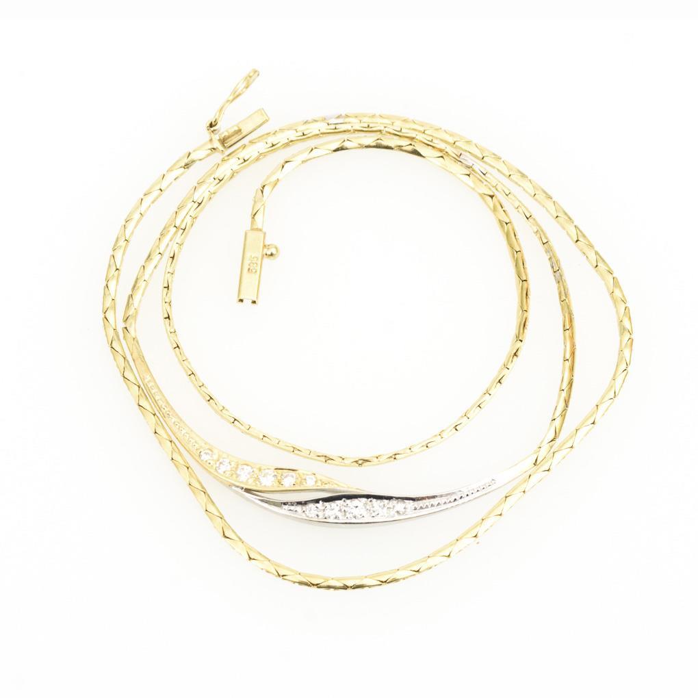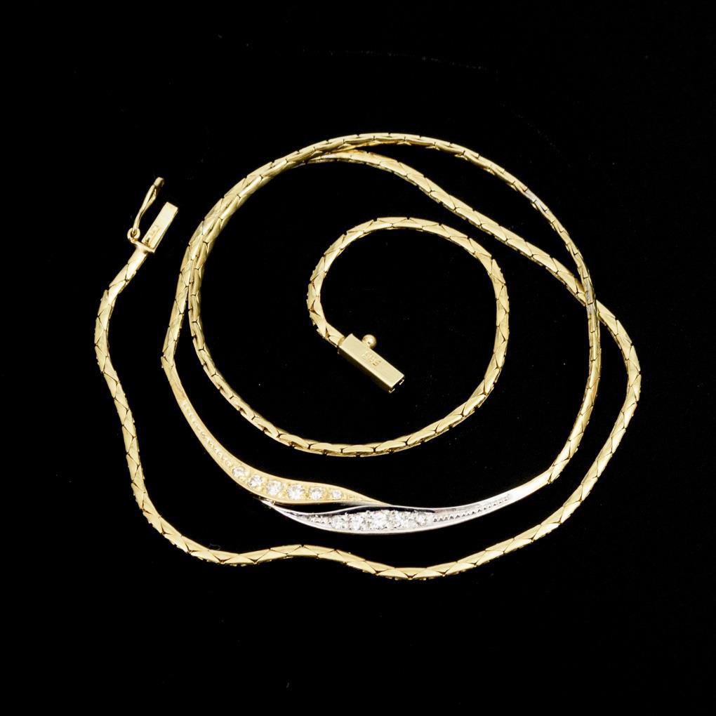 Gelbgold/Weißgold 585 gestempelt. Brillanten gesamt 0,23 ct. L 43 cm. 8,1 g.