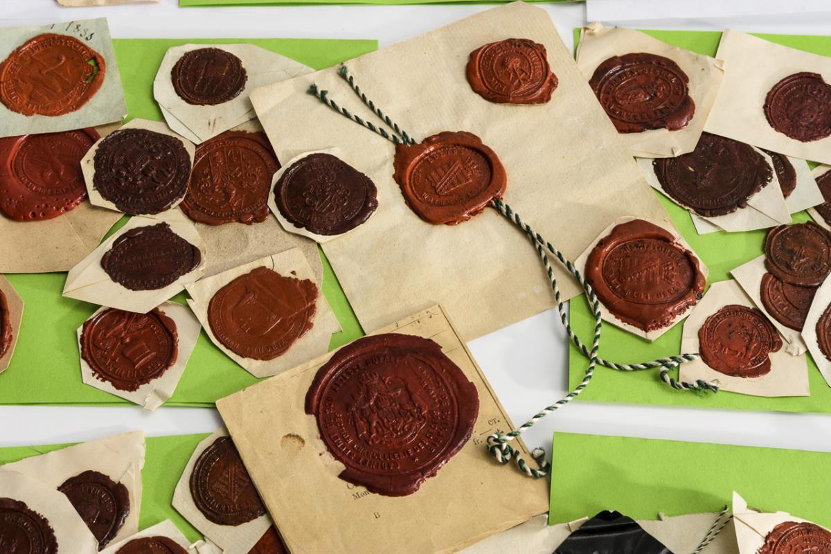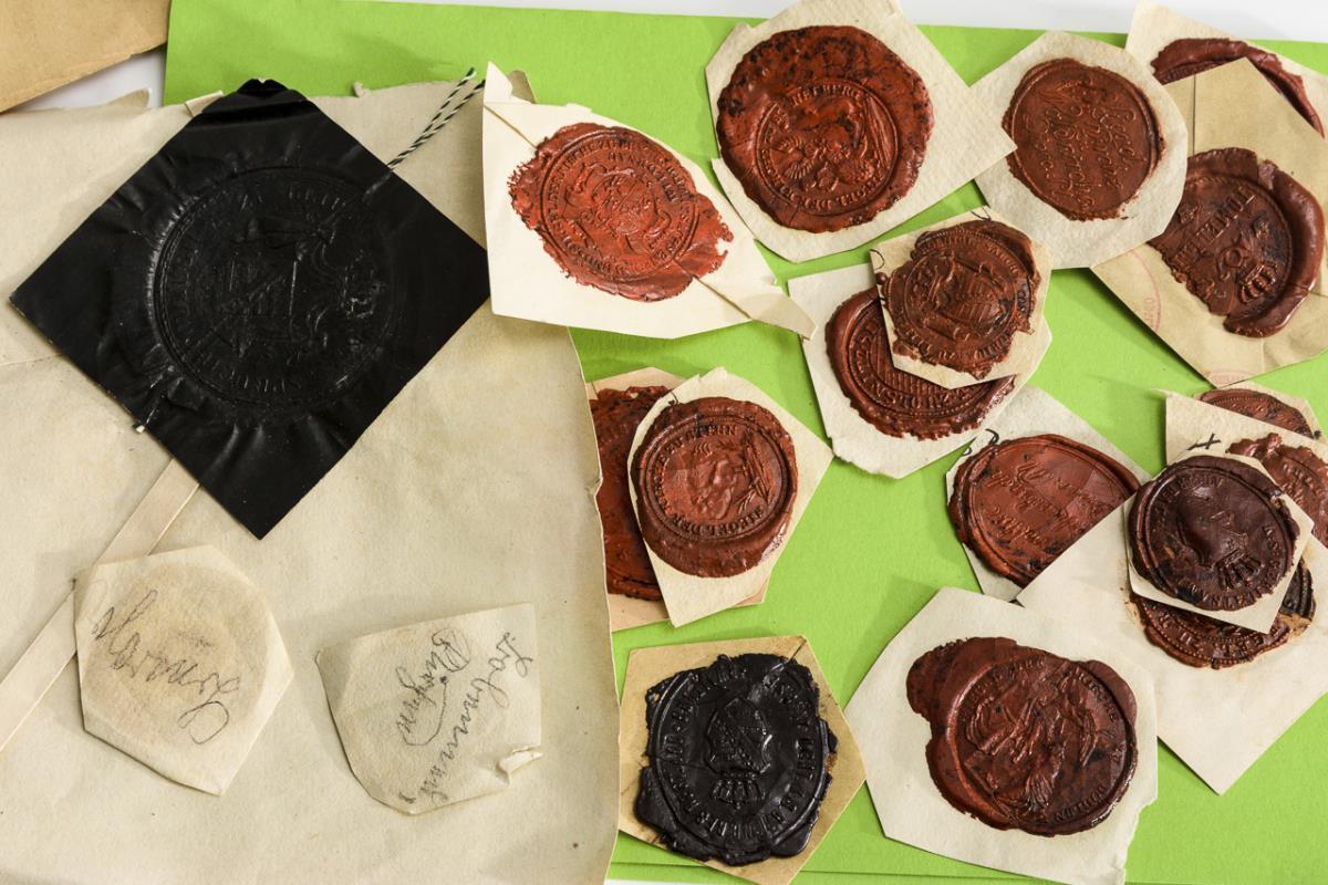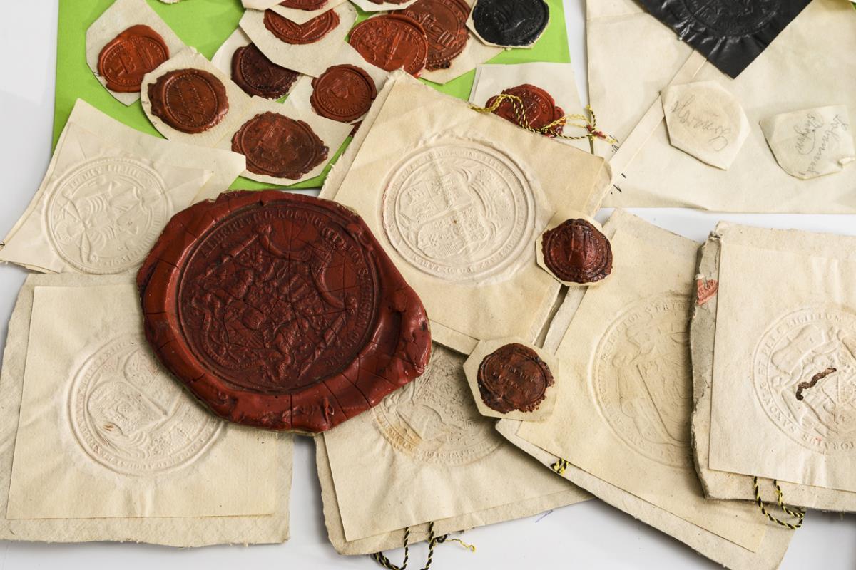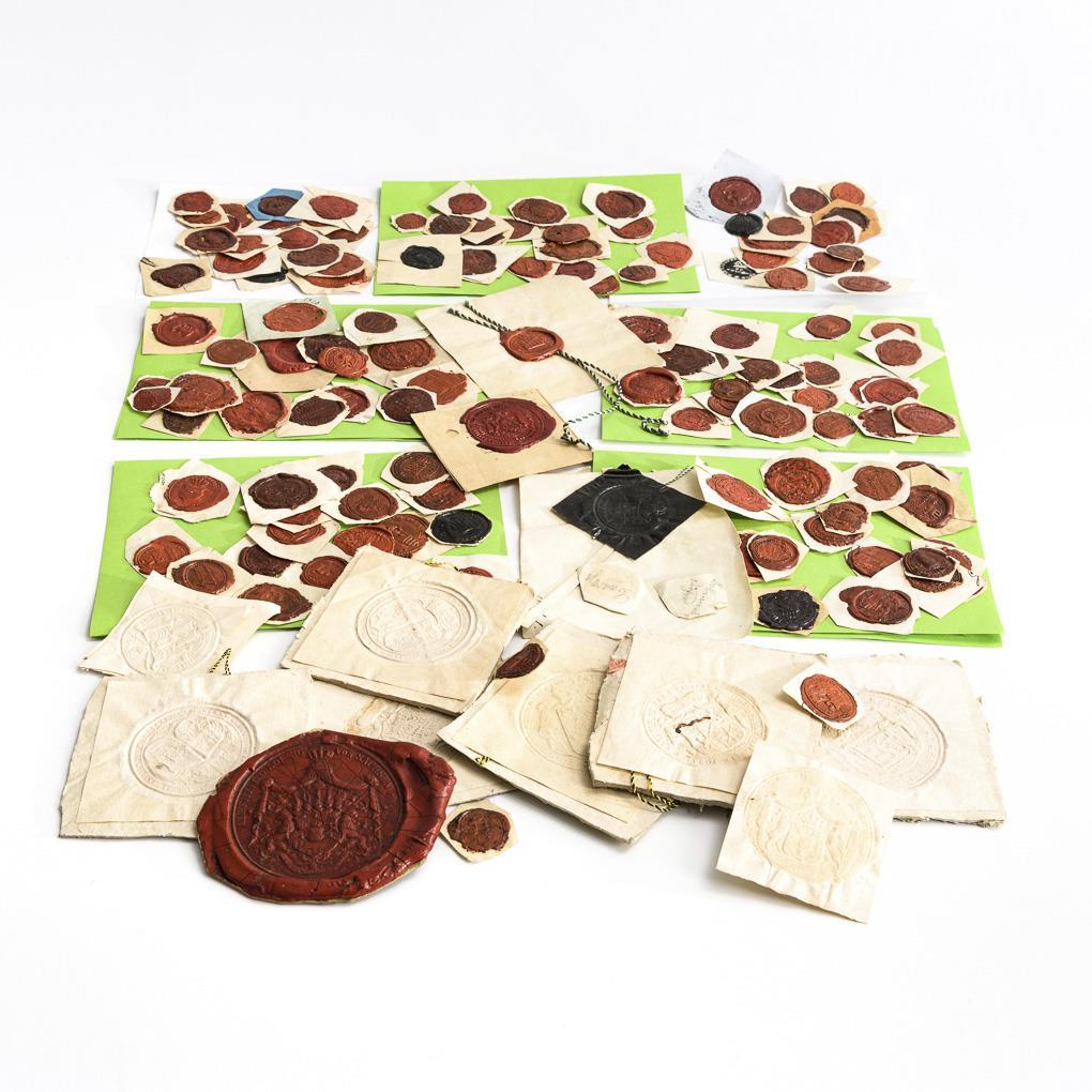 Sehr viele Siegelwachsabdrücke, darunter ein großes Wappen König Albert von Sachsen, "Cabinet secret de son altesse royal..." Sachsen und "Ministerium des Cultes" Sachsen. Des Weiteren einige Papierabdrücke. Alters-/Gebrauchsspuren.