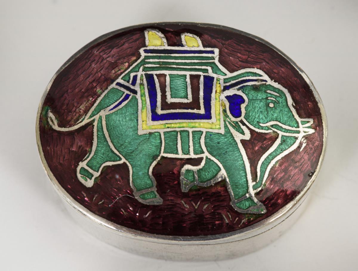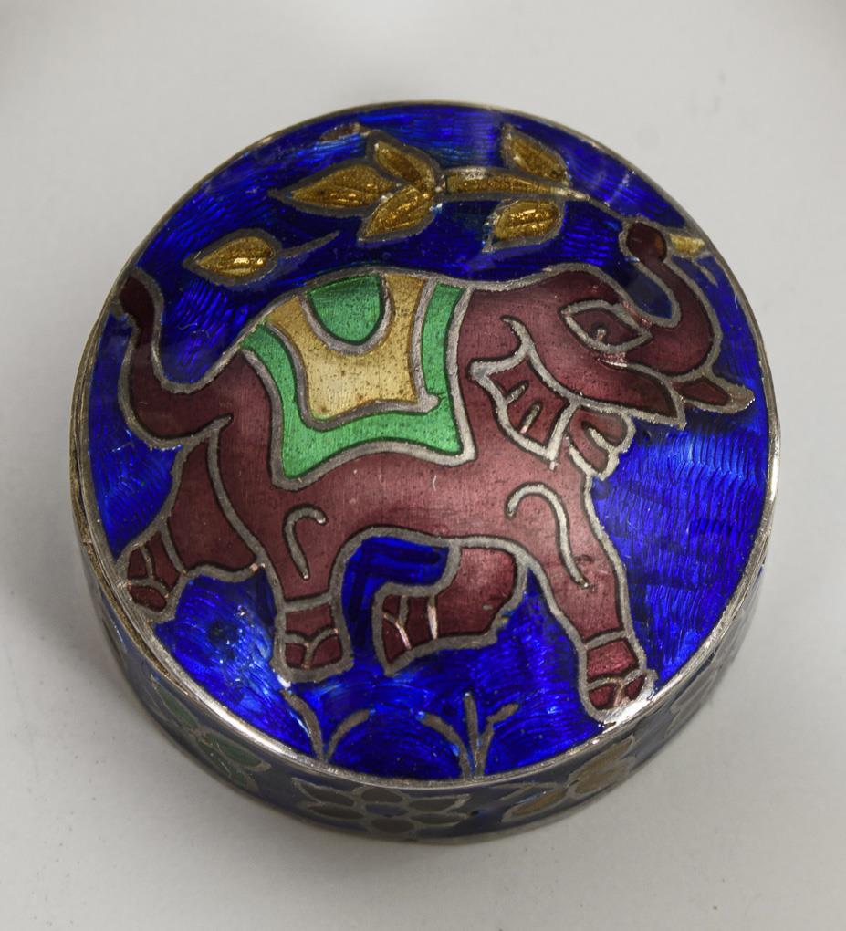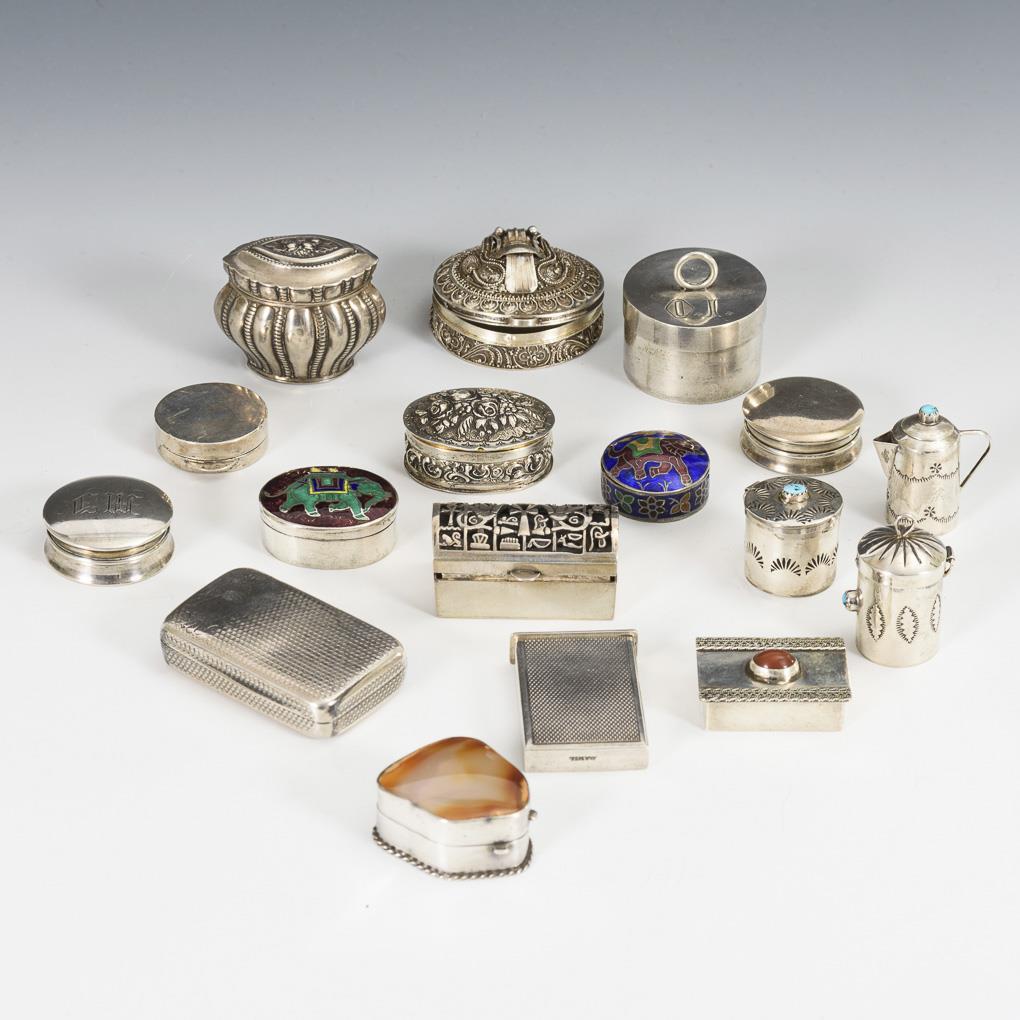 Verschiedene Döschen, darunter reliefierte, mit Email oder Steinbesatz. Teils mit Gebrauchsspuren.