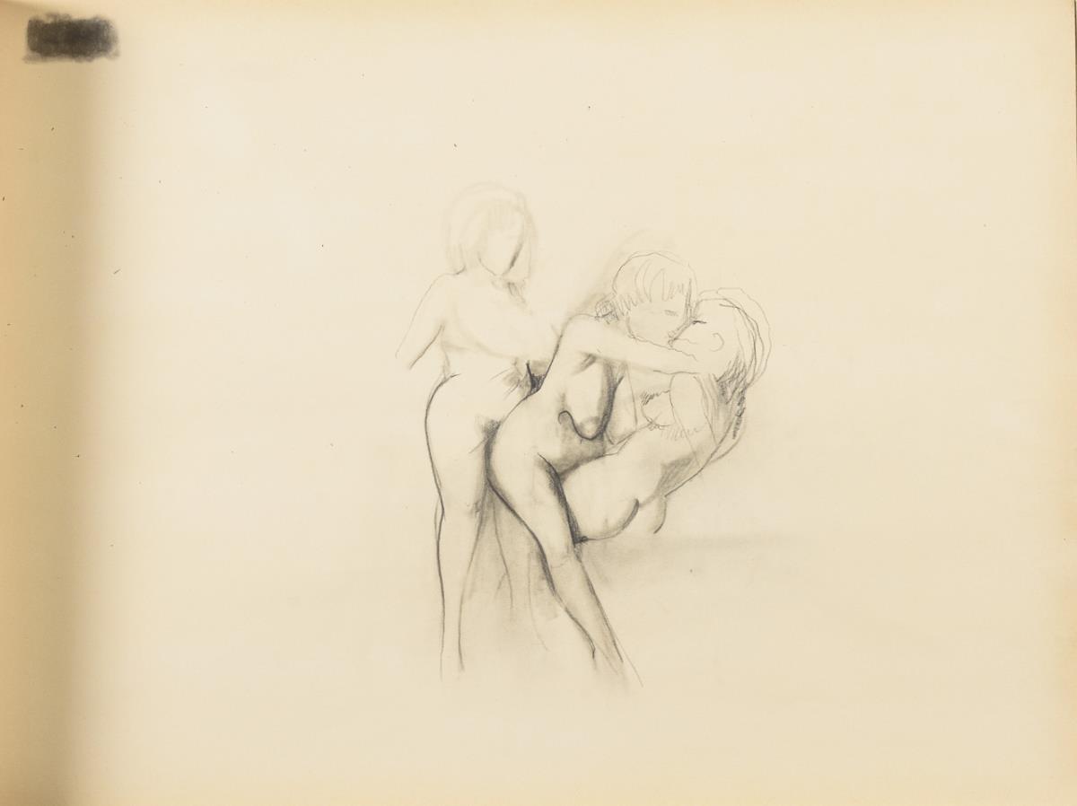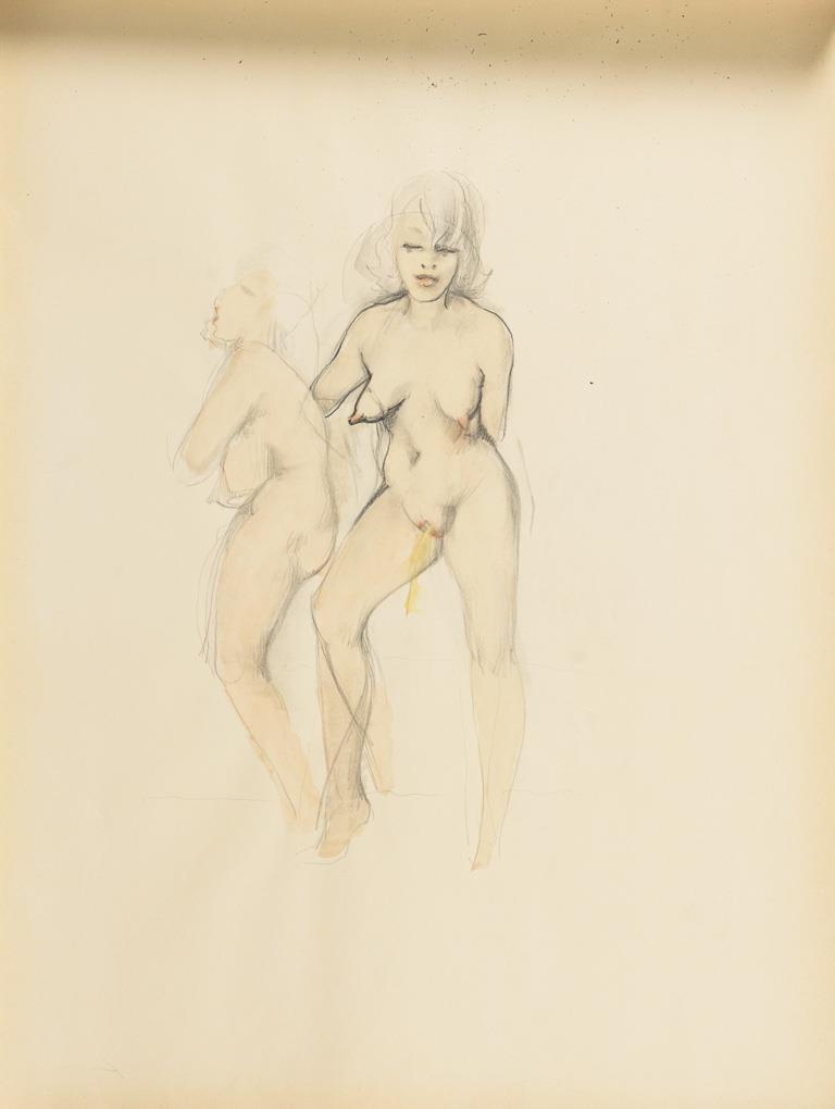 Skizzenblock mit 13 seltenen fetischistischen Zeichnungen, davon 6 aquarelliert. Dazu Publikation mit Widmung: Hans-Jürgen Döpp. Clitoria. Die surreale Erotik des Mister O. Passion 2011. Teils griffspurig und mit bestoßenen Rändern.