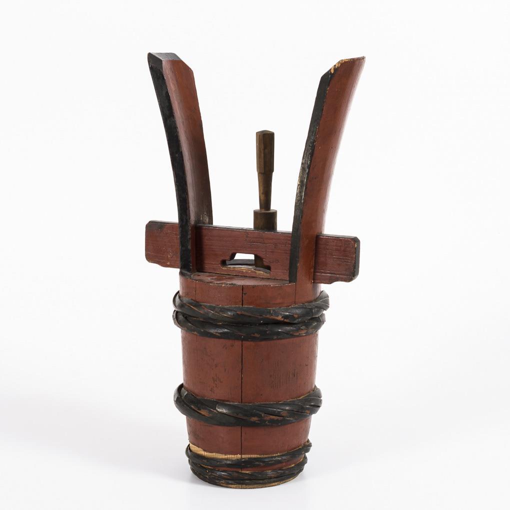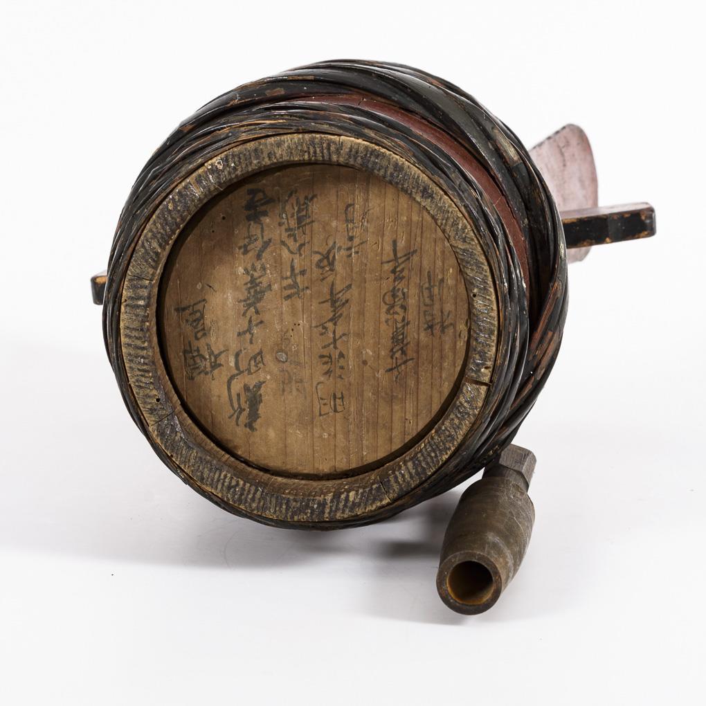 Konisches Daubenfass mit zwei hochgezogenen Henkeln und Verschluss. Monzeichen mit Eichenblättern. Altersgemäße Gebrauchsspuren.