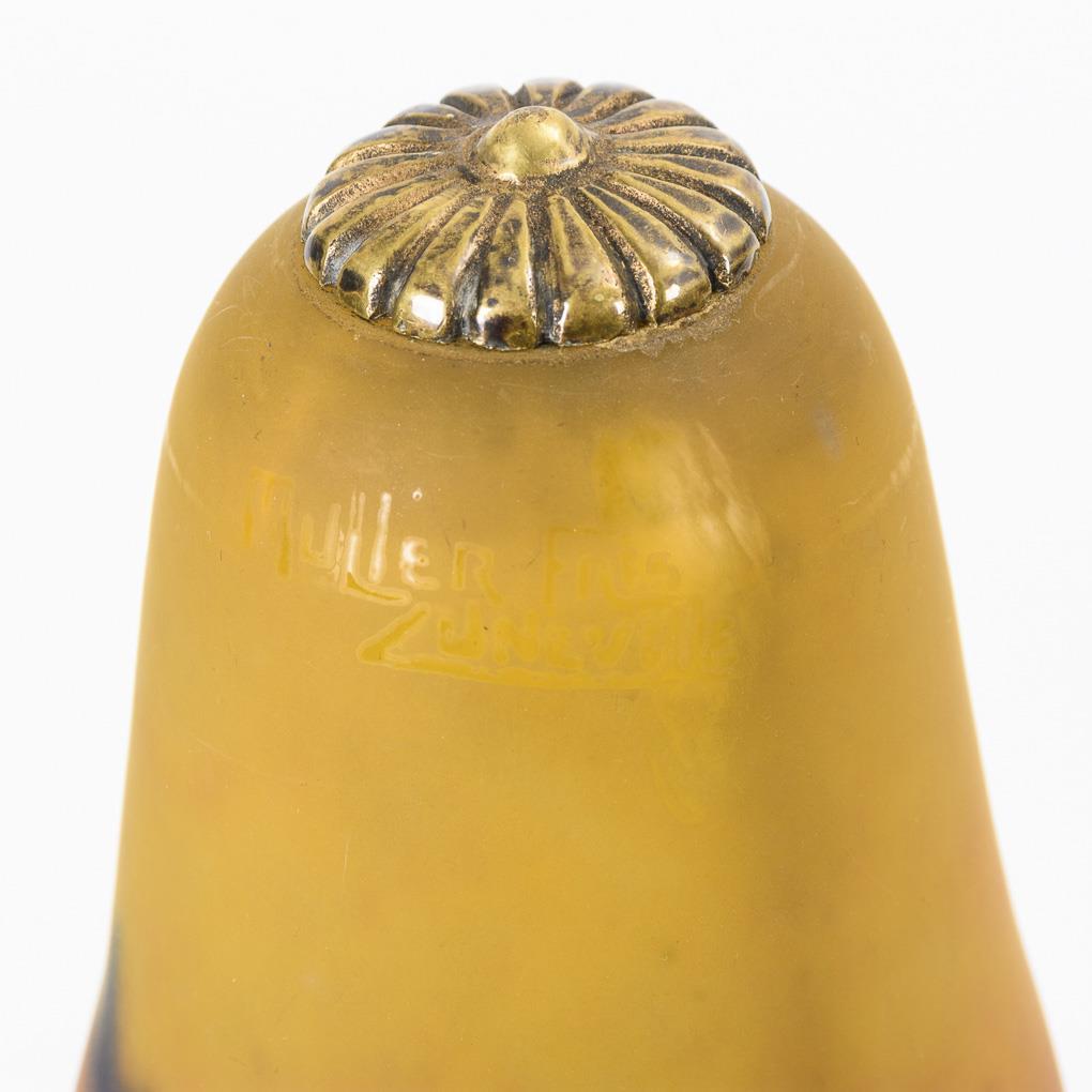 Farbloses Glas mit gelben, roten und blauen Pulvereinschmelzungen, mattiert. H 34 cm.