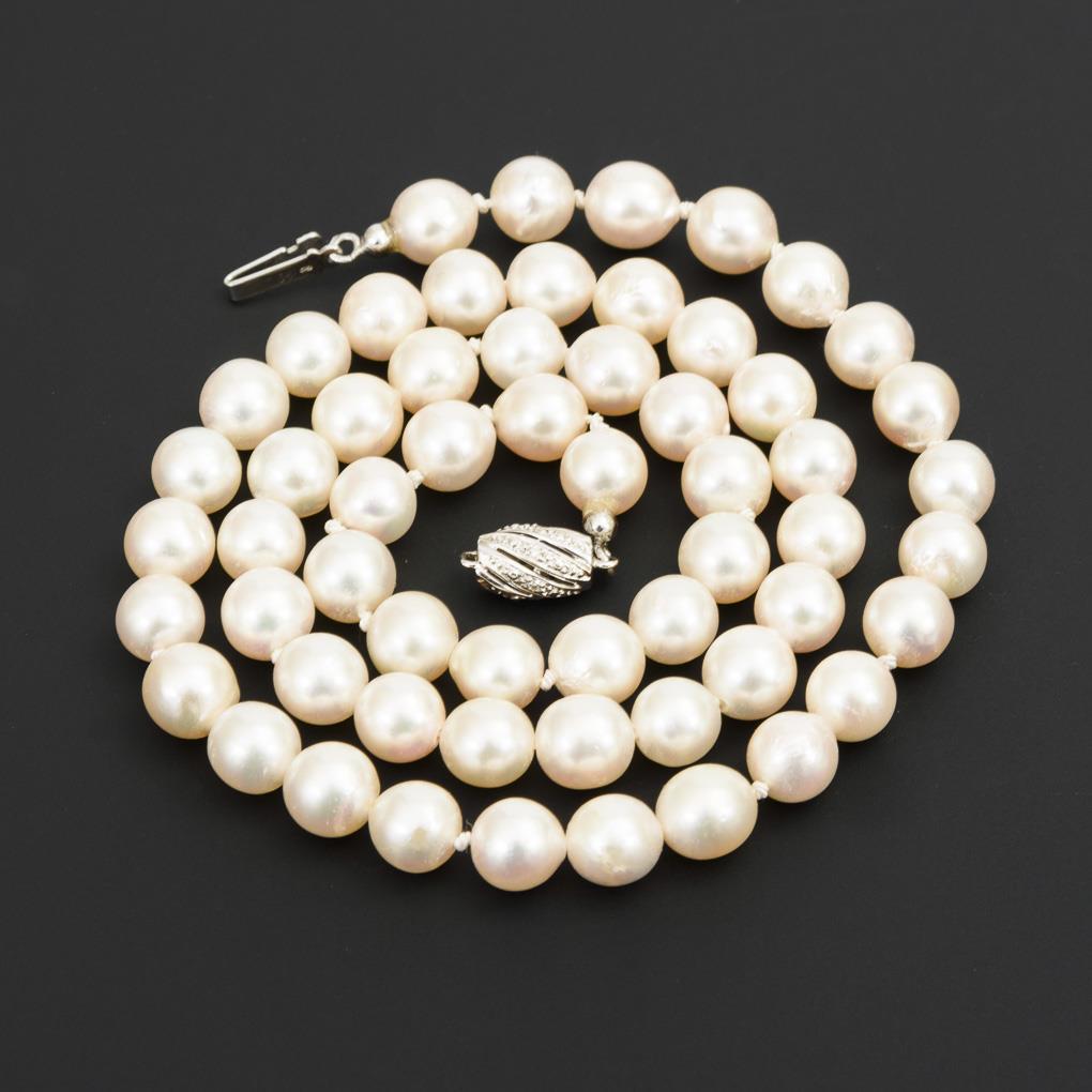 Weißgold 585 gestempelt. L 54 cm. Perlen Ø 0,8 cm. 46,8 g.