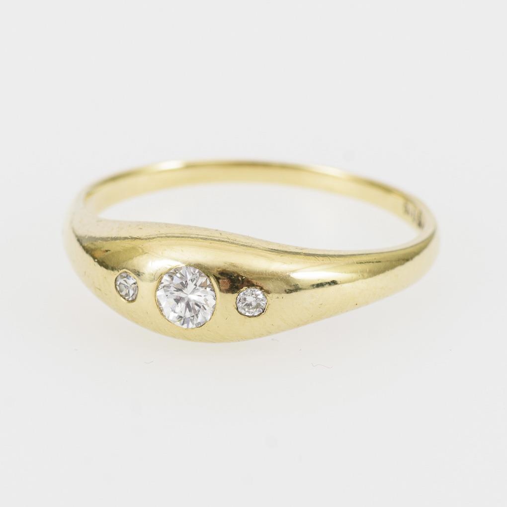 Gelbgold 585 gestempelt. Brillanten gesamt 0,19 ct. Ringgröße 57. 2,9 g.
