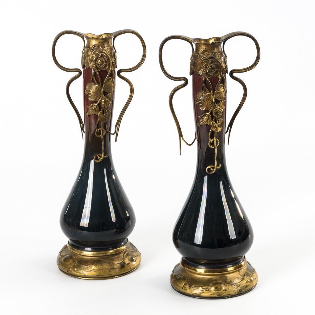 Paar Jugendstil-Vasen mit Metallmontierung.