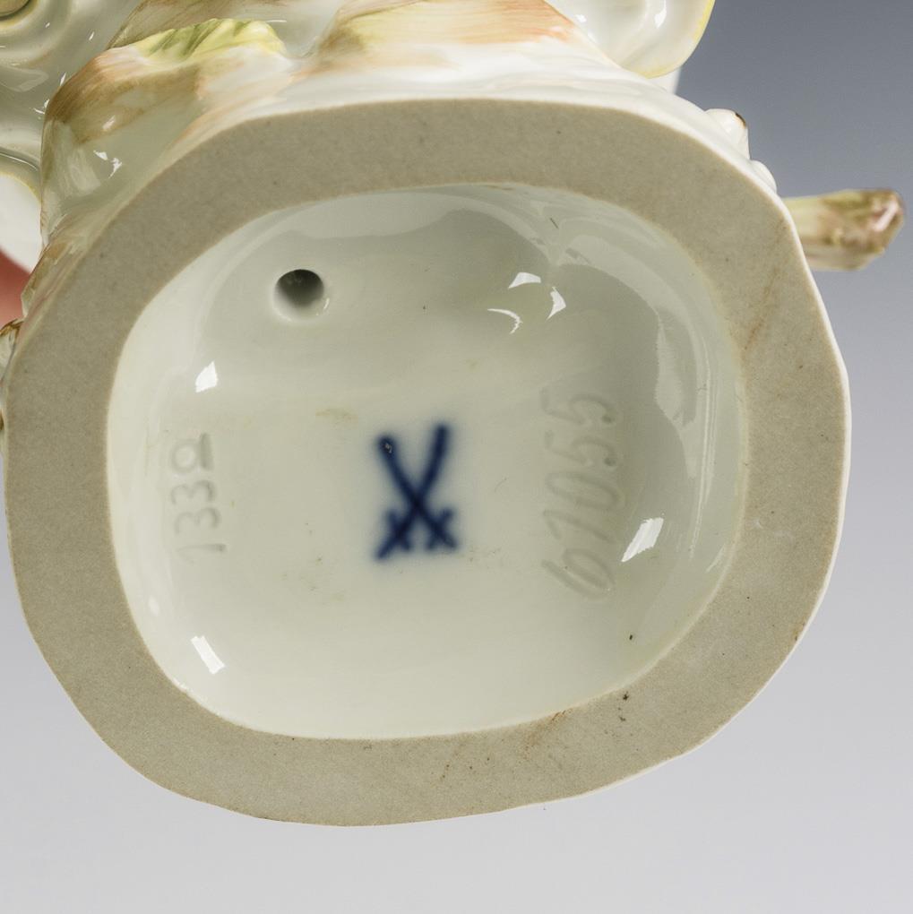 Auf einem Rocaillesockel stehende, Feldfrüchte in ihrer Schürze tragende Bäuerin.