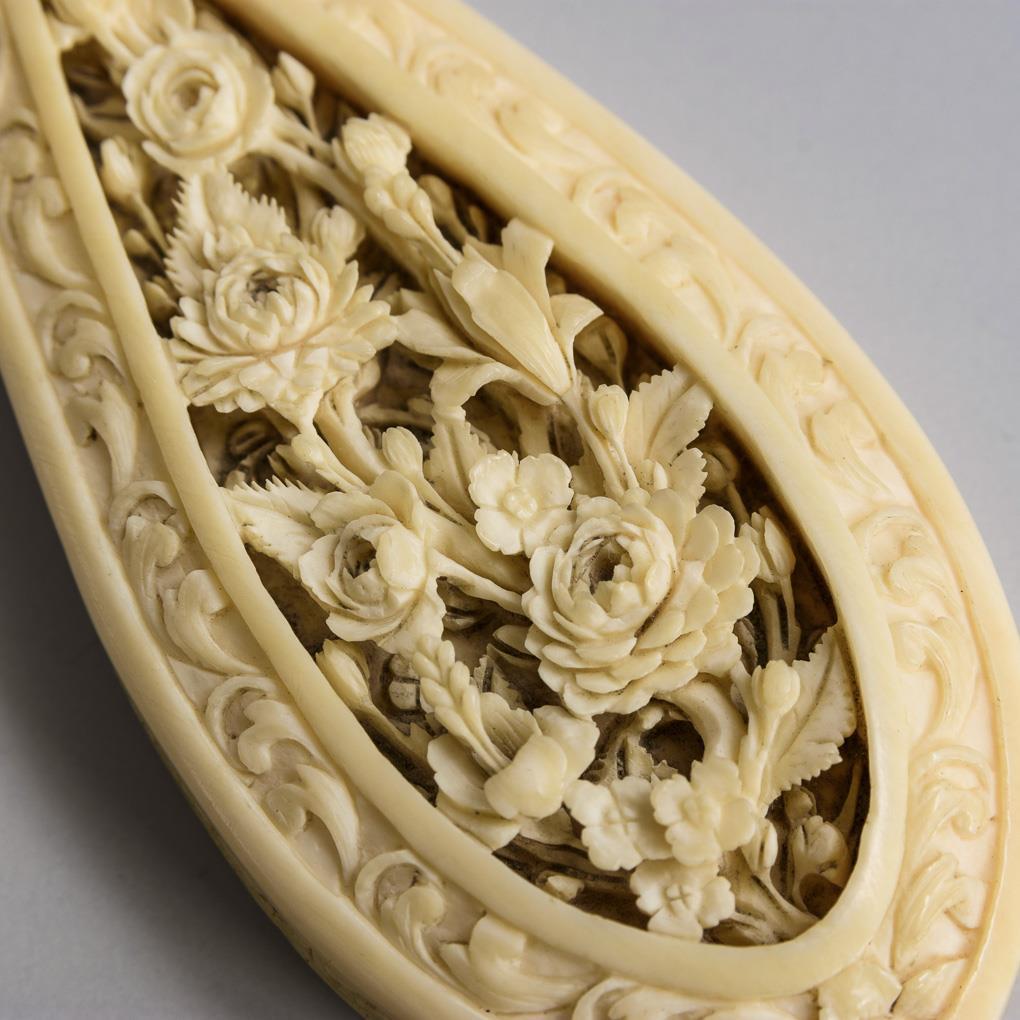 Außergewöhnlich fein beschnitzter Elfenbein-Handspiegel.